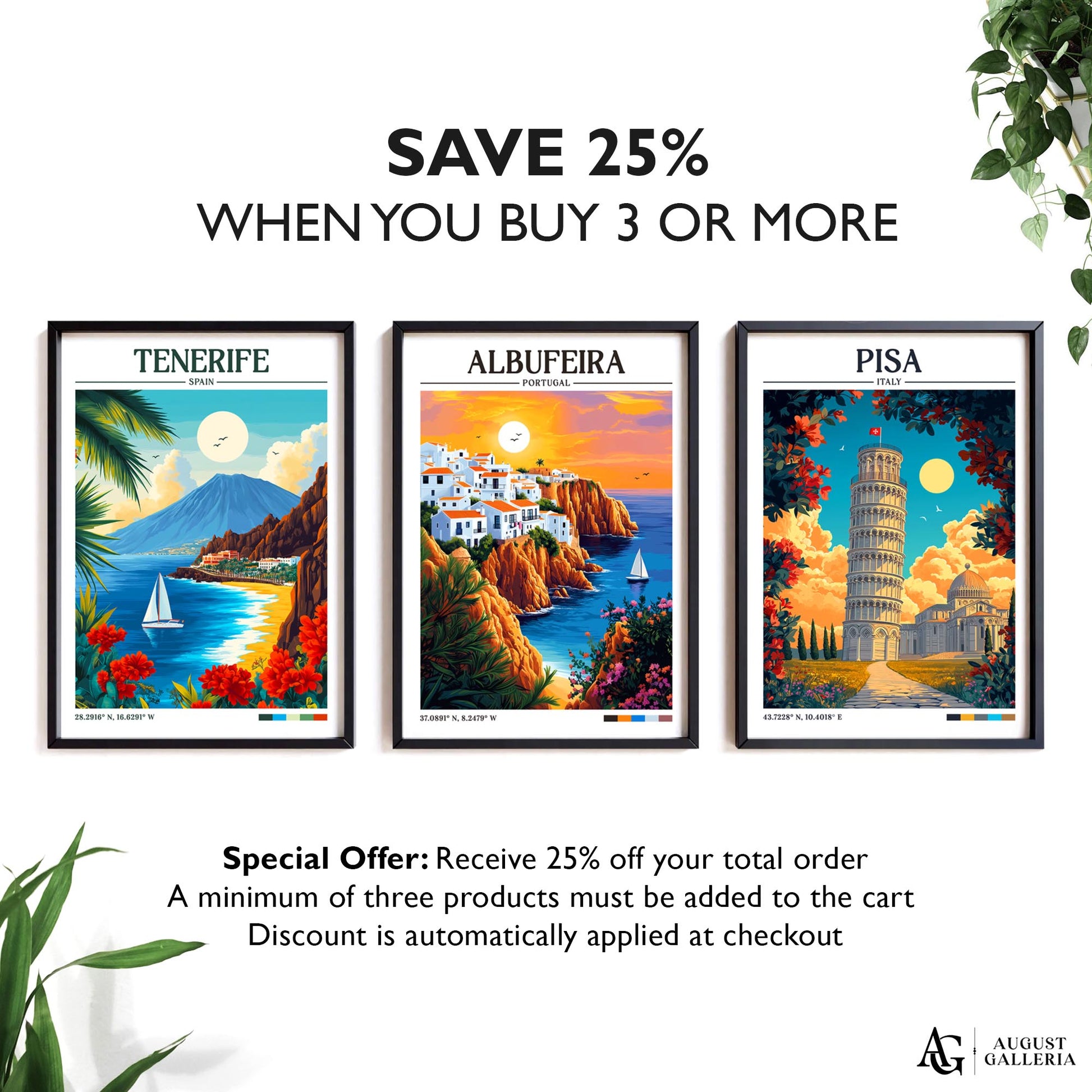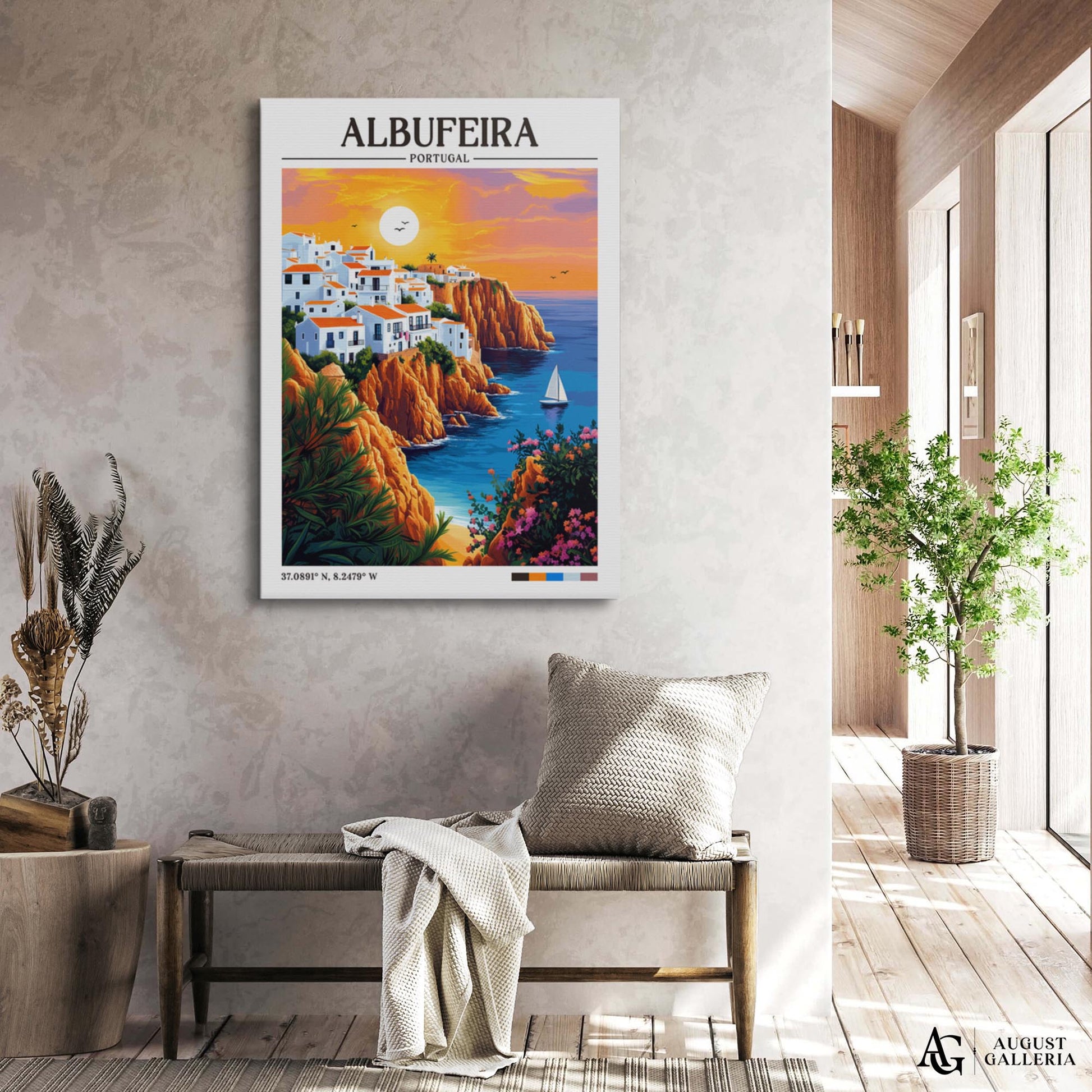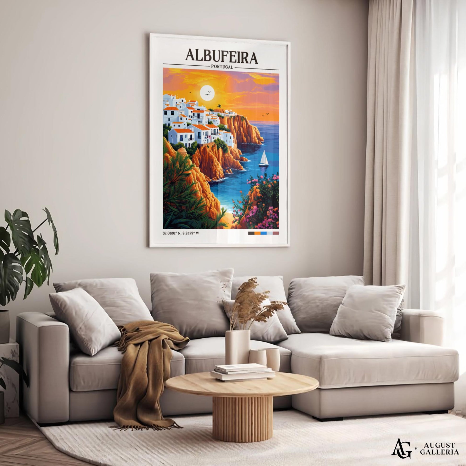 Step into the sun-kissed charm of Albufeira with this retro-inspired travel print. Celebrating the coastal beauty of this Algarve gem, the artwork captures the essence of its relaxed atmosphere, golden beaches, and vibrant culture. Albufeira’s perfect blend of historic charm and modern resort life is evoked in this piece, making it an ideal addition for lovers of Portugal and seaside escapes. Whether you’ve basked in its Mediterranean warmth or dream of its shores, this print brings the spirit of Albufeira into your space, evoking a sense of wanderlust and seaside serenity.