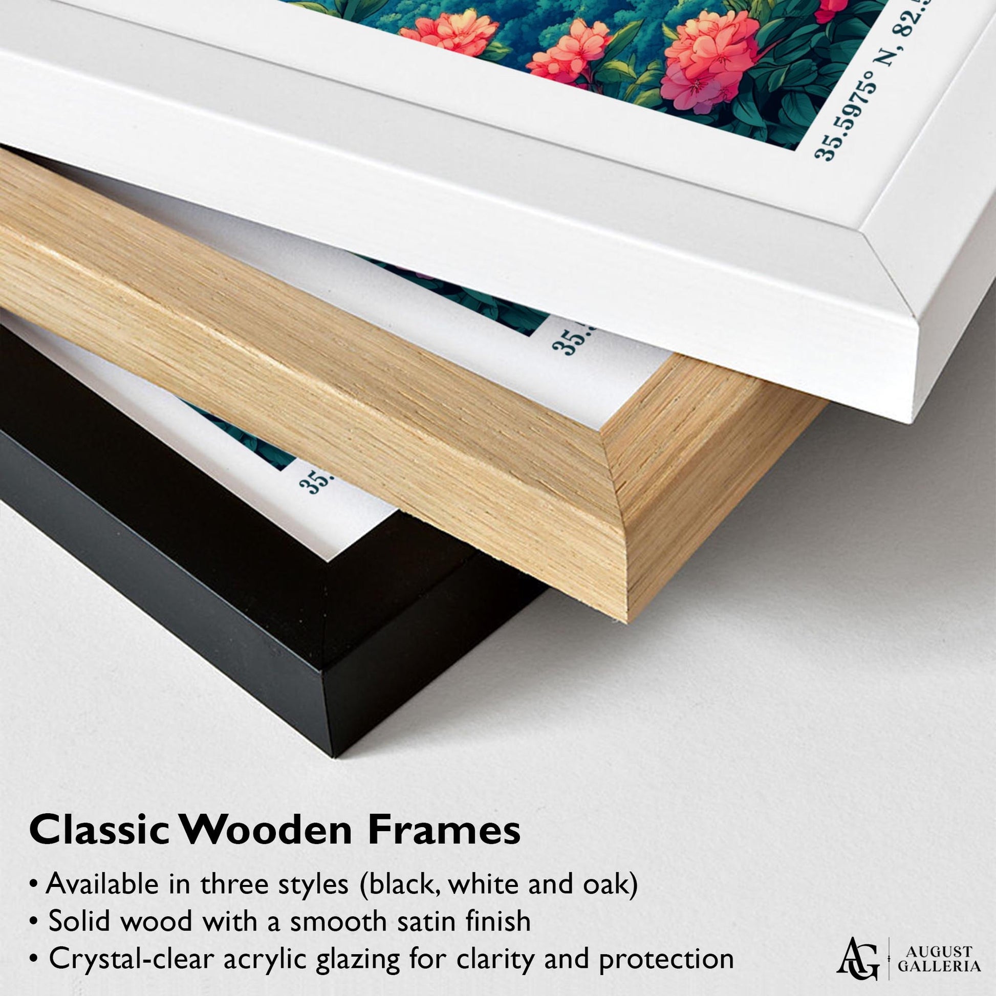 Made from sustainably sourced European wood and delivered ready to hang, available in black, white, or natural oak finishes. Includes a durable crystal-clear, shatter-resistant Perspex glaze for lasting protection and a sleek, modern look.