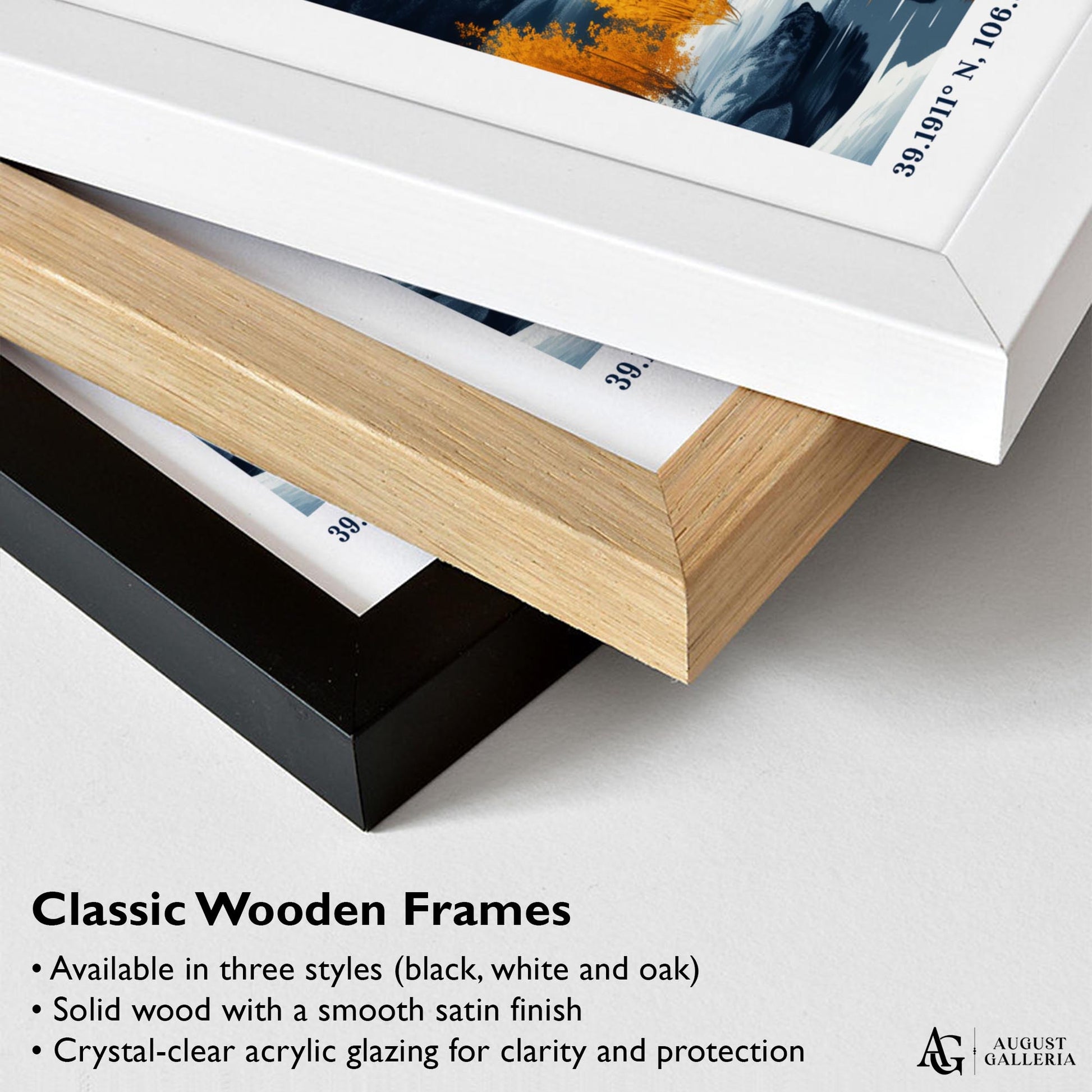 Made from sustainably sourced European wood and delivered ready to hang, available in black, white, or natural oak finishes. Includes a durable crystal-clear, shatter-resistant Perspex glaze for lasting protection and a sleek, modern look.