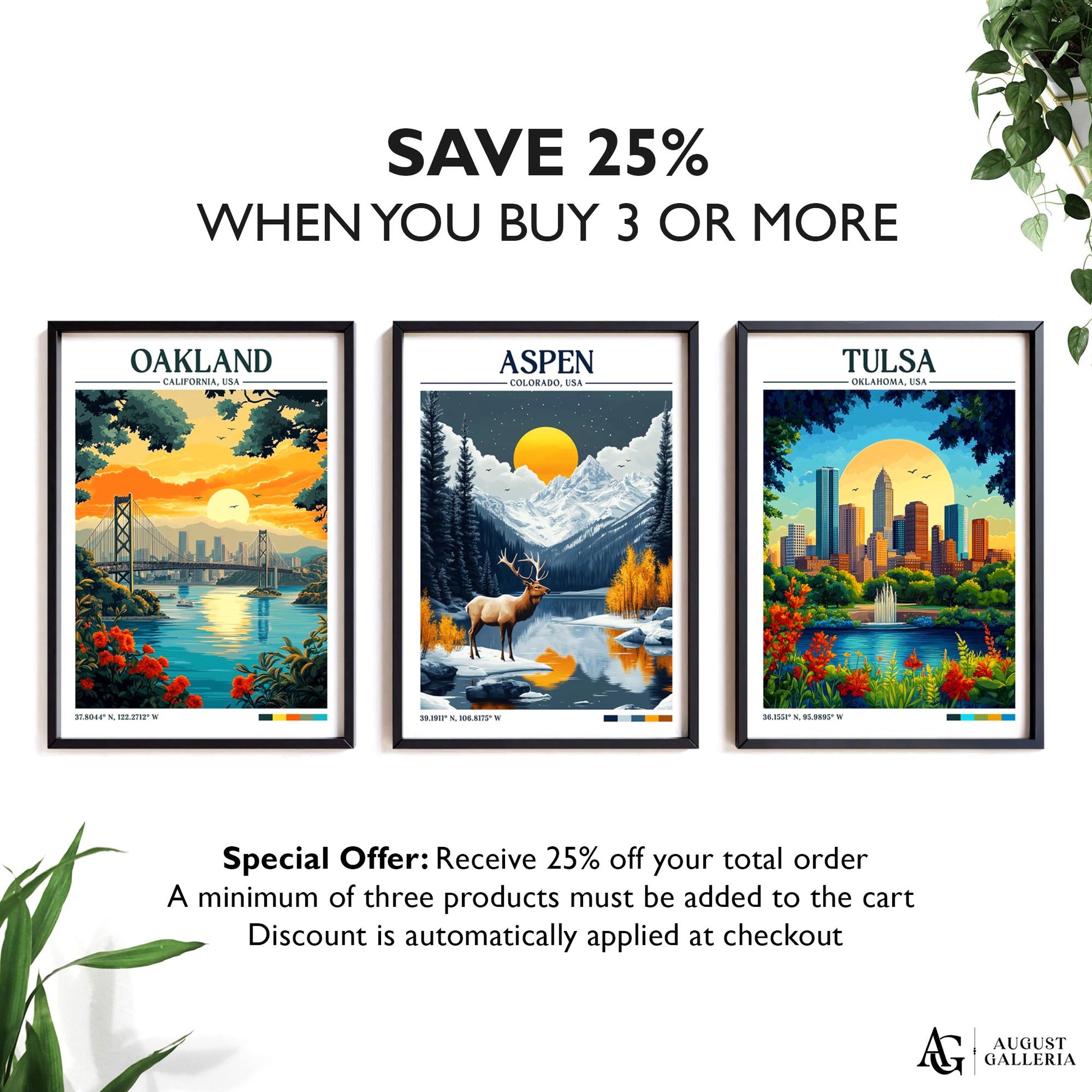 Experience the luxurious charm of Aspen with this retro-inspired travel print, celebrating the iconic mountain town known for its world-class skiing, stunning alpine landscapes, and vibrant cultural scene. Nestled in the heart of the Rocky Mountains, Aspen offers a perfect blend of outdoor adventure and refined elegance. This artwork captures the essence of the town’s dynamic spirit, making it a perfect addition for lovers of winter sports, nature, or high-altitude retreats. Whether you’ve skied its slopes or dream of visiting, this print brings the spirit of Aspen into your space, evoking the timeless allure of the Colorado mountains.