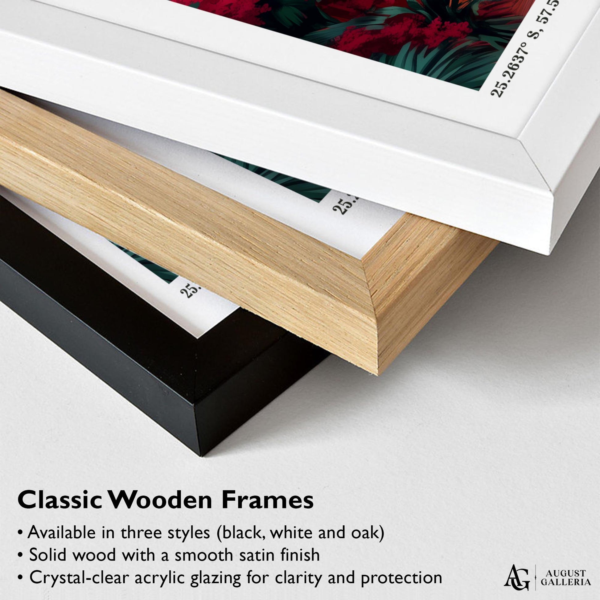 Made from sustainably sourced European wood and delivered ready to hang, available in black, white, or natural oak finishes. Includes a durable crystal-clear, shatter-resistant Perspex glaze for lasting protection and a sleek, modern look.