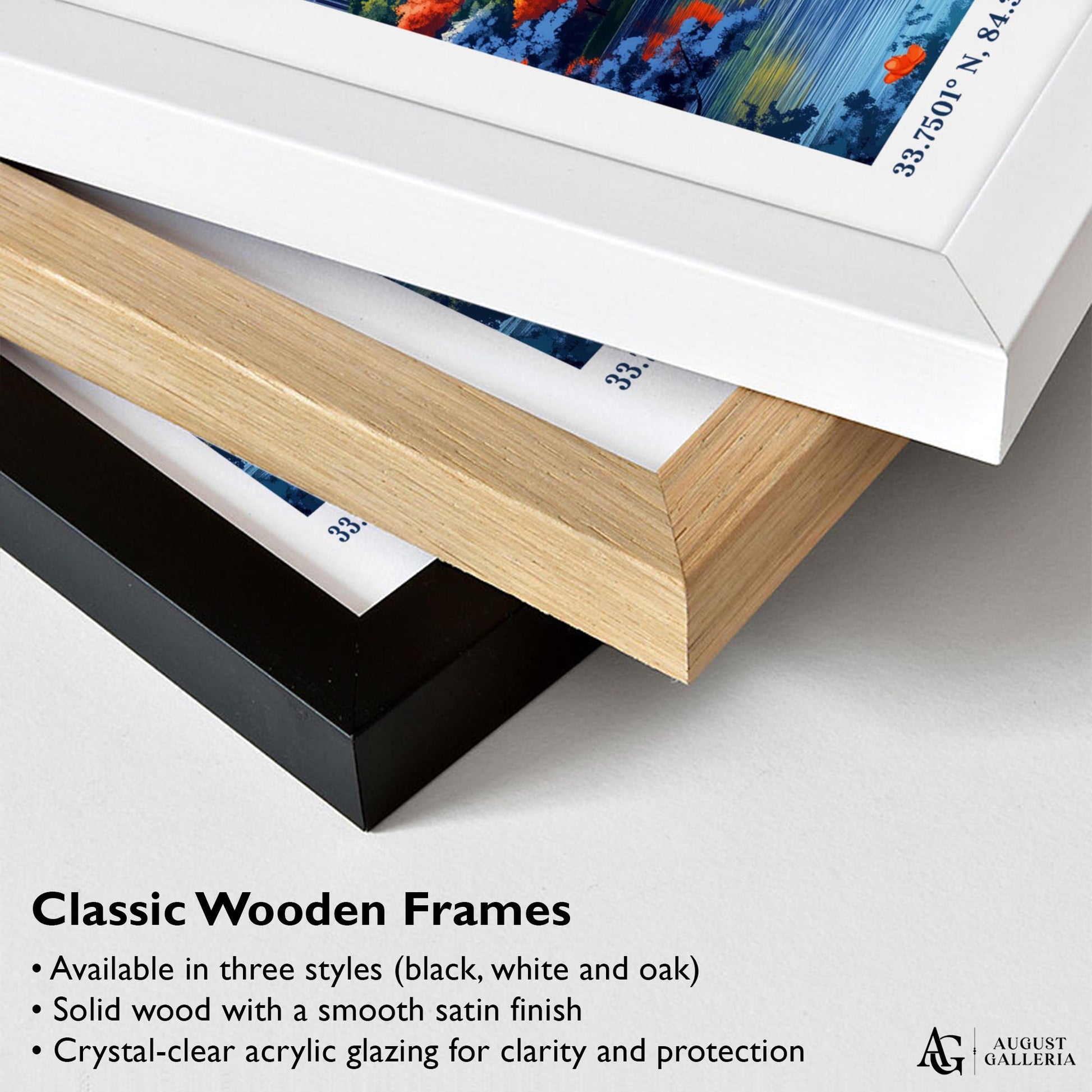Made from sustainably sourced European wood and delivered ready to hang, available in black, white, or natural oak finishes. Includes a durable crystal-clear, shatter-resistant Perspex glaze for lasting protection and a sleek, modern look.