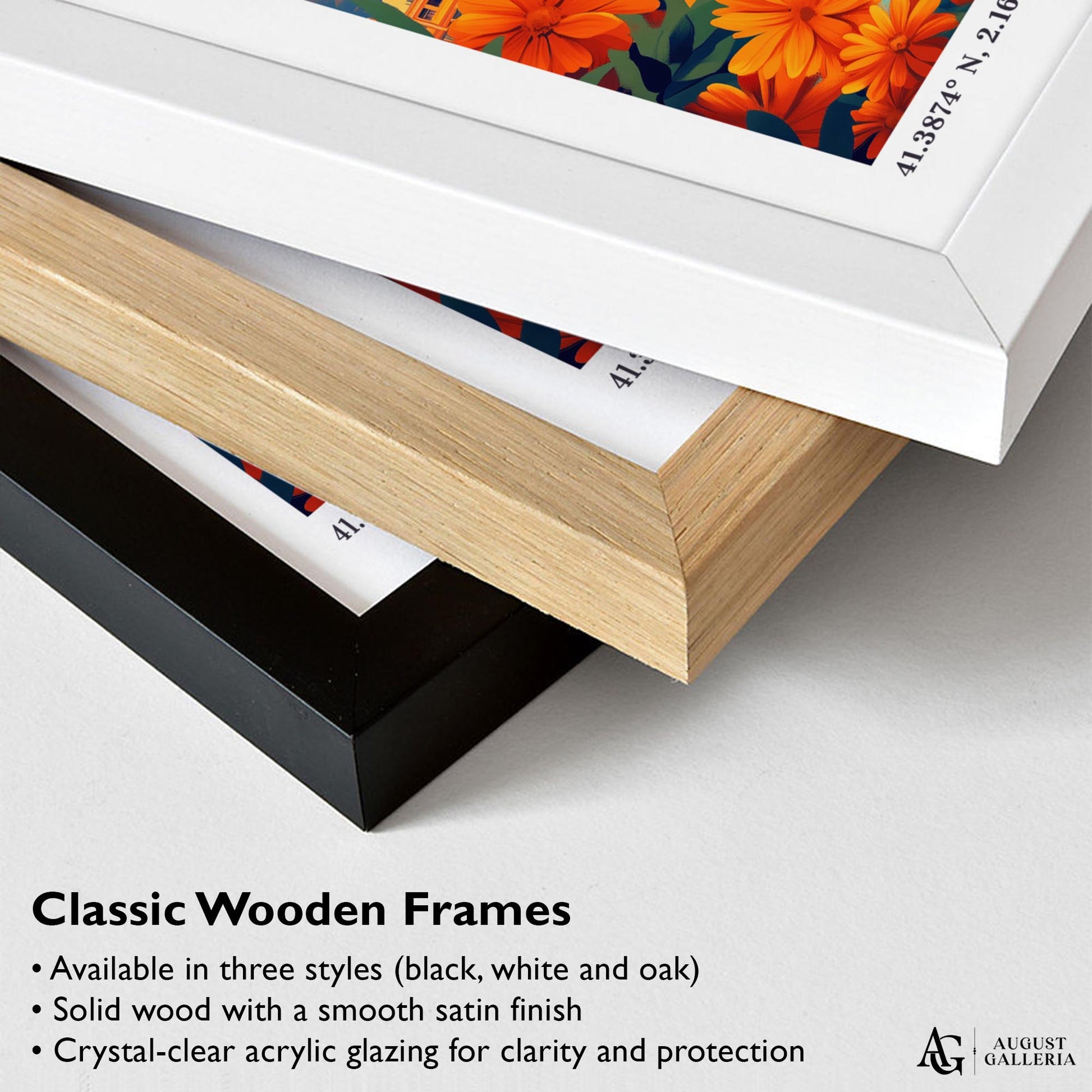 Made from sustainably sourced European wood and delivered ready to hang, available in black, white, or natural oak finishes. Includes a durable crystal-clear, shatter-resistant Perspex glaze for lasting protection and a sleek, modern look.