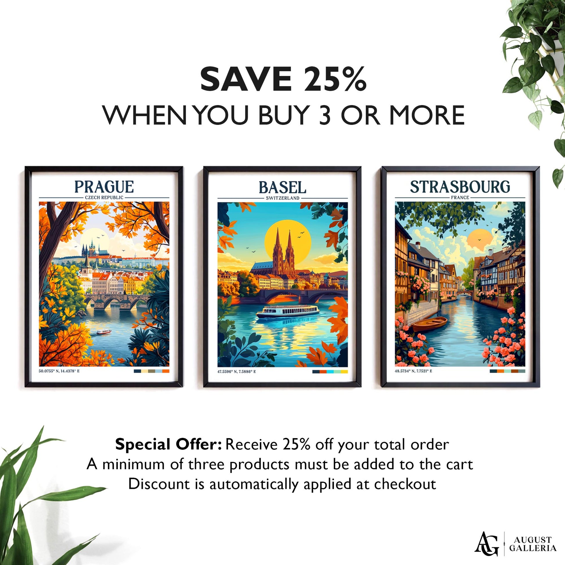 Discover the cultural and historical charm of Basel with this retro-inspired travel print, capturing the essence of Switzerland’s third-largest city. Known for its rich heritage, stunning medieval architecture, and vibrant art scene, Basel blends tradition with modernity in the most captivating way. This artwork evokes the city’s unique energy, from its scenic location along the Rhine River to its world-renowned museums and festivals. Perfect for lovers of Swiss culture, European cities, or art enthusiasts, this print brings the spirit of Basel into your space, offering a timeless connection to one of Switzerland’s most fascinating destinations.