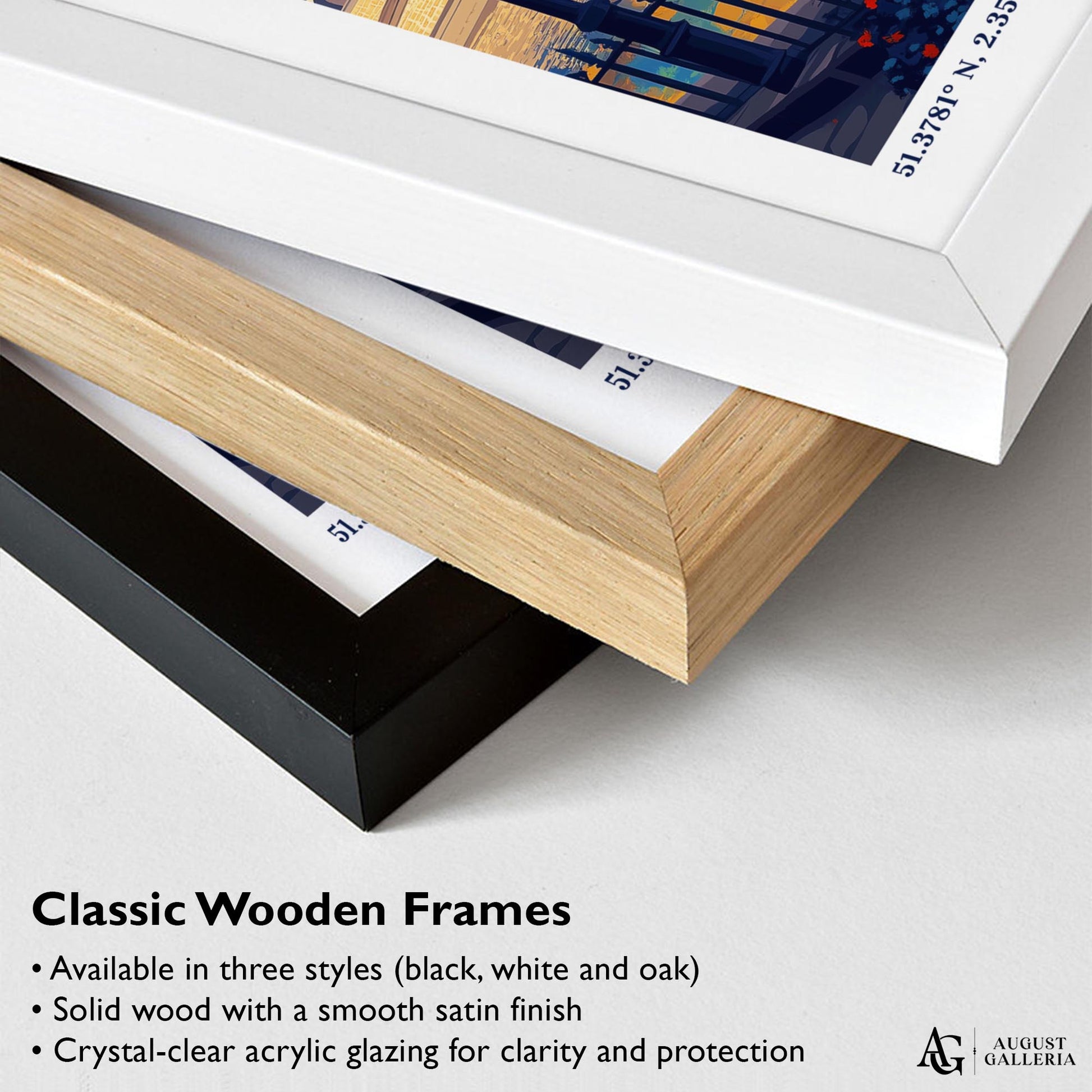 Step into the timeless elegance of Bath with this retro-inspired travel print, celebrating the charm and history of this UNESCO World Heritage city. Known for its stunning Georgian architecture, rich cultural heritage, and relaxing spa traditions, Bath offers a perfect blend of history and sophistication. This artwork captures the city’s refined beauty, evoking a sense of tranquillity and classic British charm. Whether you've wandered its picturesque streets or dream of visiting, this print brings the essence of Bath into your home, offering a nostalgic glimpse into one of England’s most enchanting destinations.