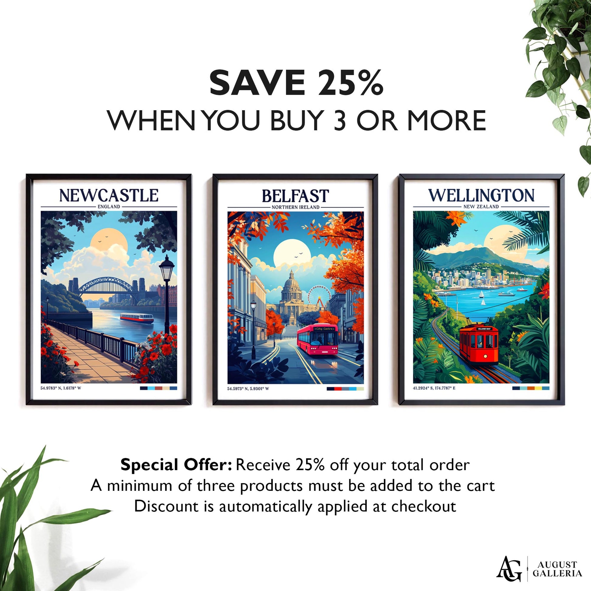 Capture the unique charm and rich history of Belfast with this retro-inspired travel print, celebrating the heart of Northern Ireland’s capital. A city of resilience and creativity, Belfast is known for its stunning waterfront, vibrant arts scene, and deep cultural heritage. This artwork reflects the city's dynamic spirit, from its historic streets to its modern energy, making it perfect for those who appreciate Irish culture, maritime history, or urban exploration. Whether you've wandered its lively neighbourhoods or dream of visiting, this print brings the essence of Belfast into your home, evoking a sense of pride and discovery.