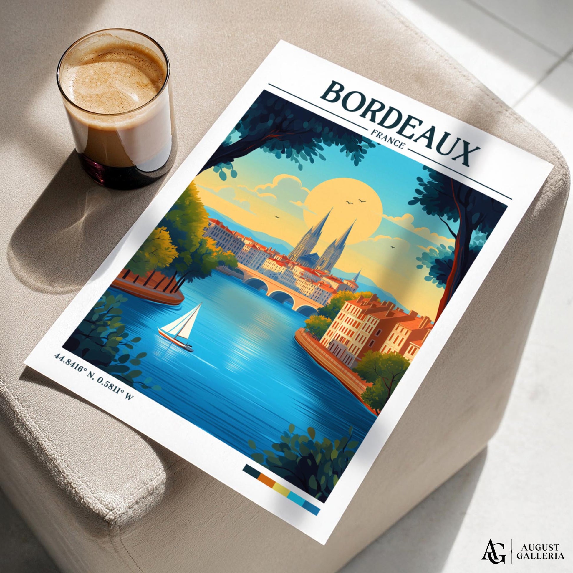 Capture the elegance and charm of Bordeaux with this retro-inspired travel print. Celebrating the city’s historic architecture and scenic riverside views, it evokes the timeless sophistication and beauty of one of France’s most iconic destinations.