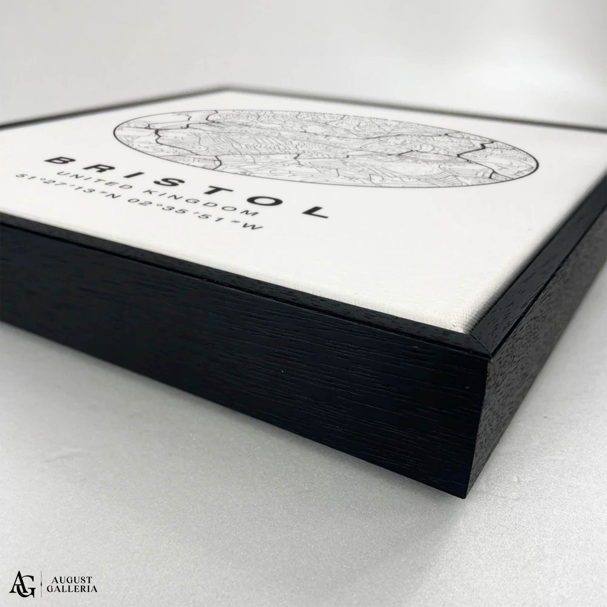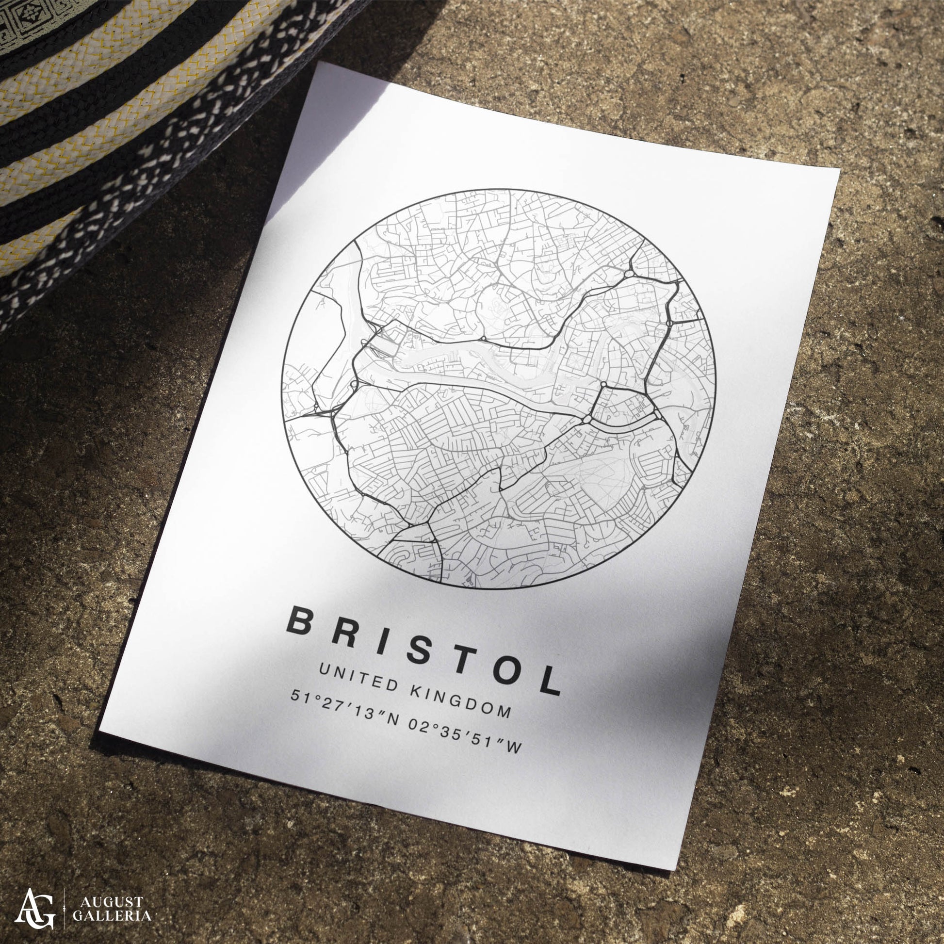 A minimalist map print of Bristol elegantly capturing the vibrant spirit of England's historic maritime city with clean lines and a modern aesthetic. Highlighting Bristol's iconic landmarks such as the Clifton Suspension Bridge, SS Great Britain, and the Harbourside, this artwork blends simplicity with cultural significance. Perfect for admirers of British heritage and contemporary decor, this print adds a touch of sophistication and urban charm to any space, celebrating Bristol's rich history and dynamic waterfront in minimalist style.
