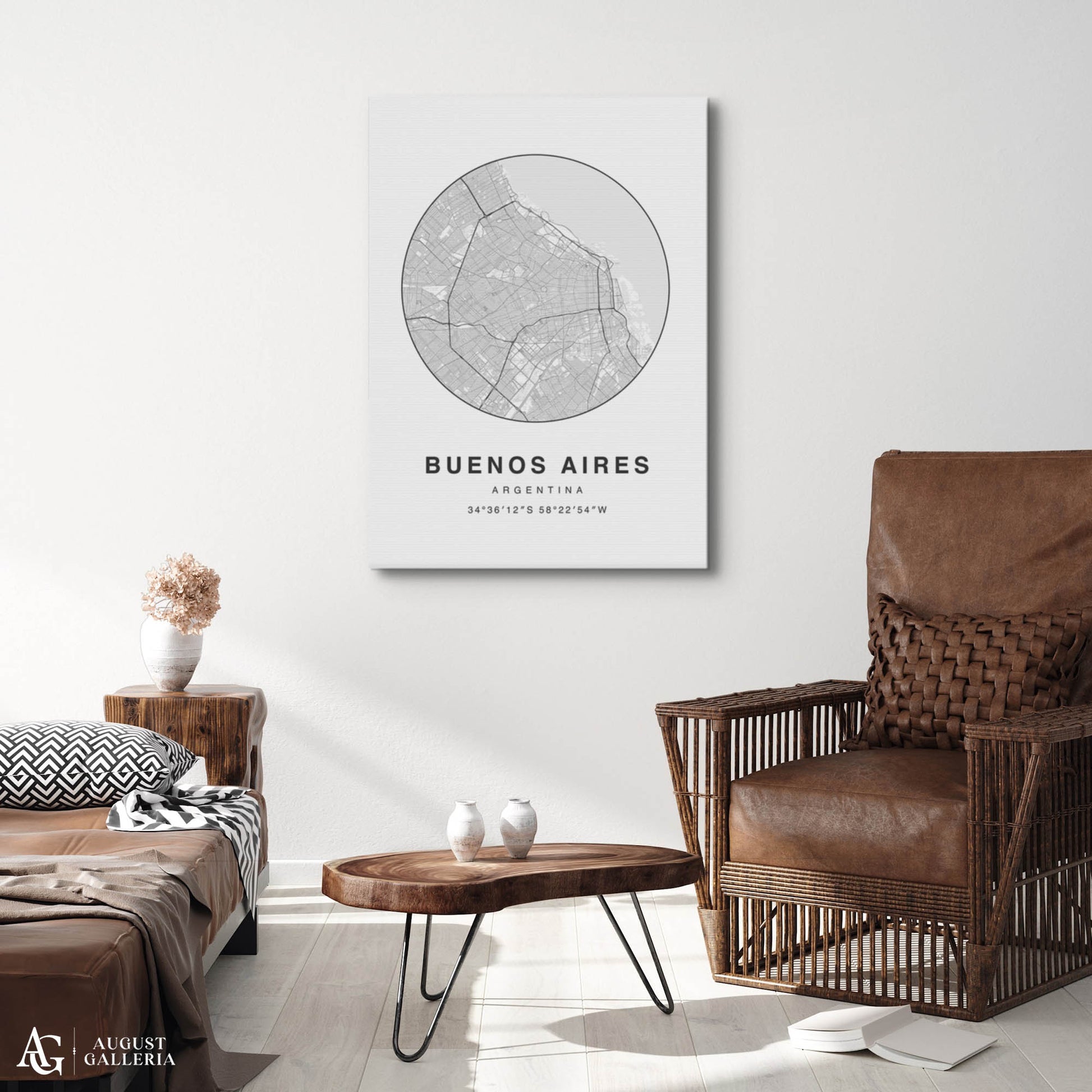 A minimalist map print of Buenos Aires capturing the dynamic essence of Argentina's cosmopolitan capital with clean lines and a modern design. Highlighting Buenos Aires' iconic landmarks such as the Obelisco, Plaza de Mayo, and colorful neighborhoods like La Boca, this artwork blends simplicity with cultural significance. Perfect for admirers of Latin American culture and contemporary decor, this print adds a touch of sophistication and urban charm to any space, celebrating Buenos Aires' rich history and vibrant cityscape in minimalist style.