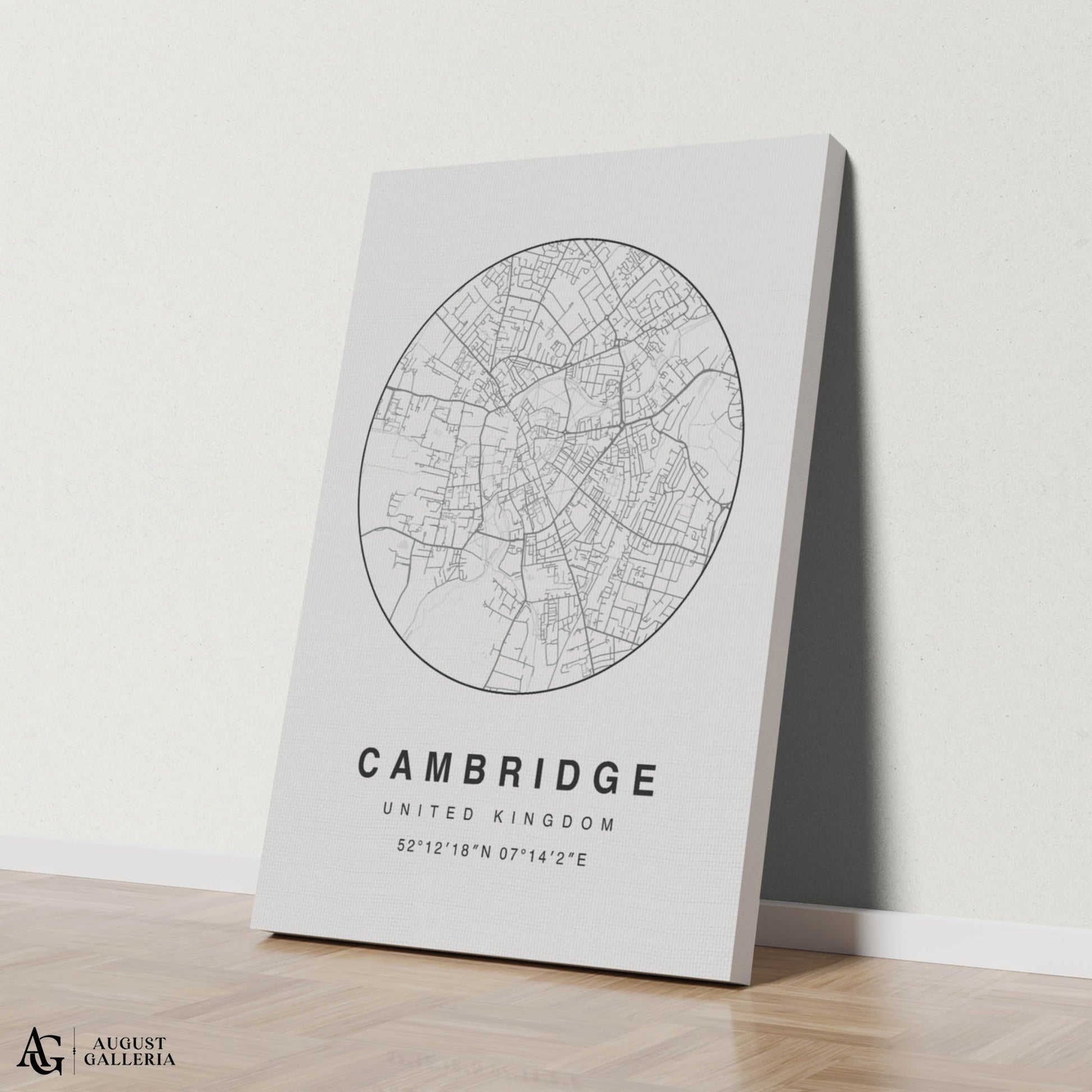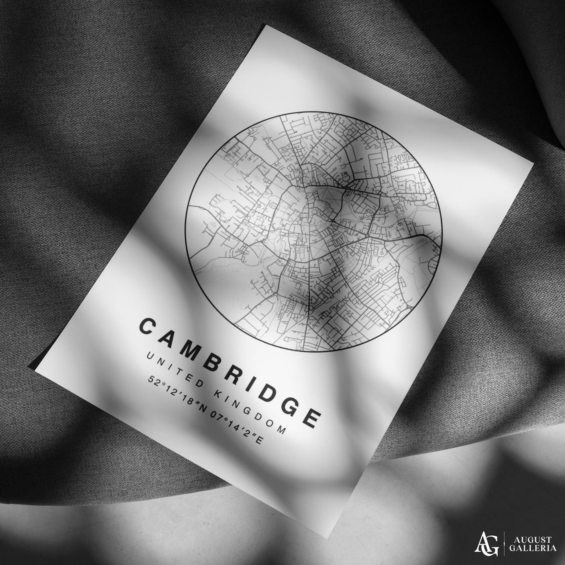 A minimalist map print of Cambridge beautifully showcasing England's historic university city with clean lines and a modern aesthetic. Highlighting Cambridge's iconic landmarks such as the University of Cambridge colleges, King's College Chapel, and the River Cam, this artwork blends simplicity with cultural significance. Perfect for lovers of academic heritage and contemporary decor, this print adds a touch of sophistication and intellectual charm to any space, celebrating Cambridge's rich history and architectural elegance in minimalist style.