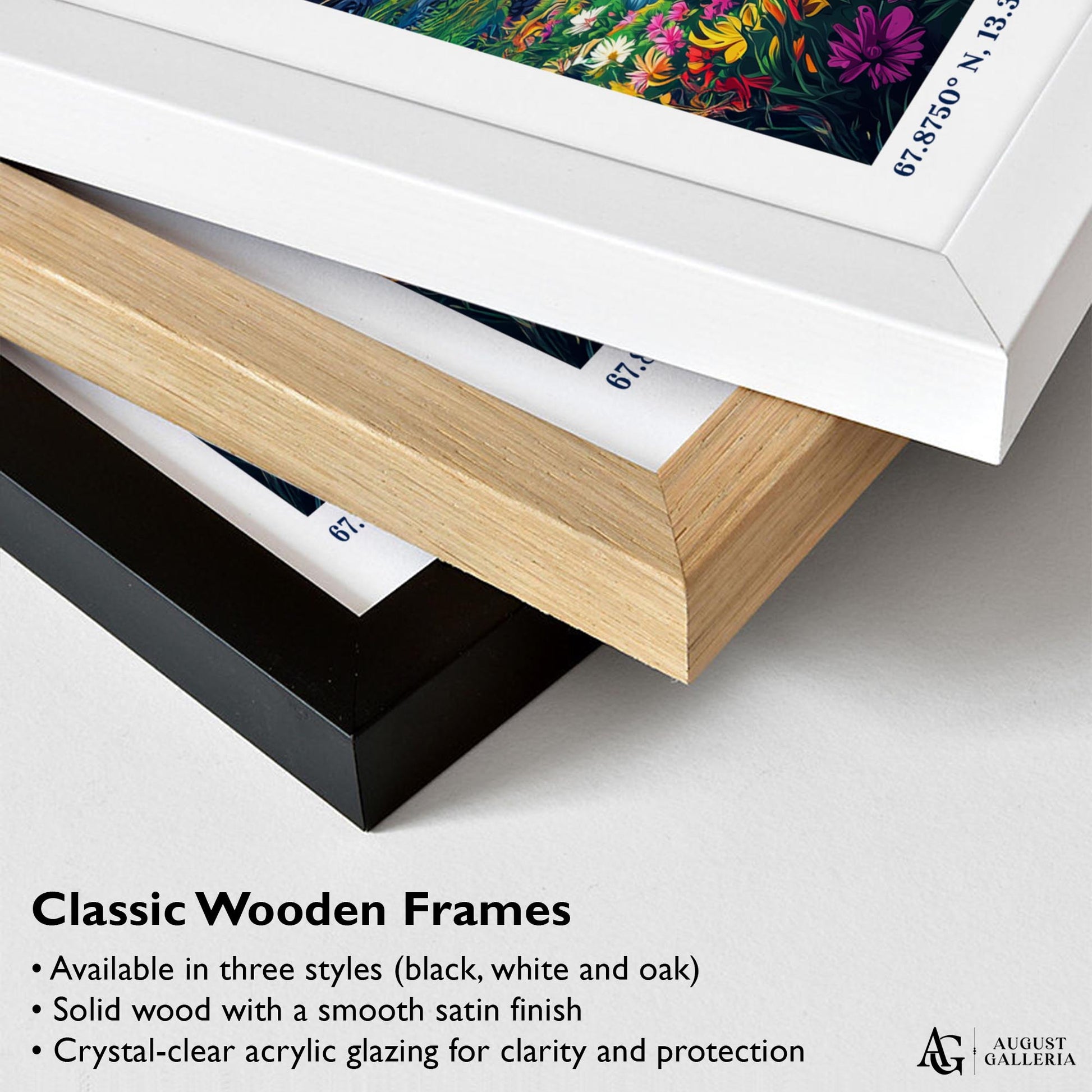 Made from sustainably sourced European wood and delivered ready to hang, available in black, white, or natural oak finishes. Includes a durable crystal-clear, shatter-resistant Perspex glaze for lasting protection and a sleek, modern look.