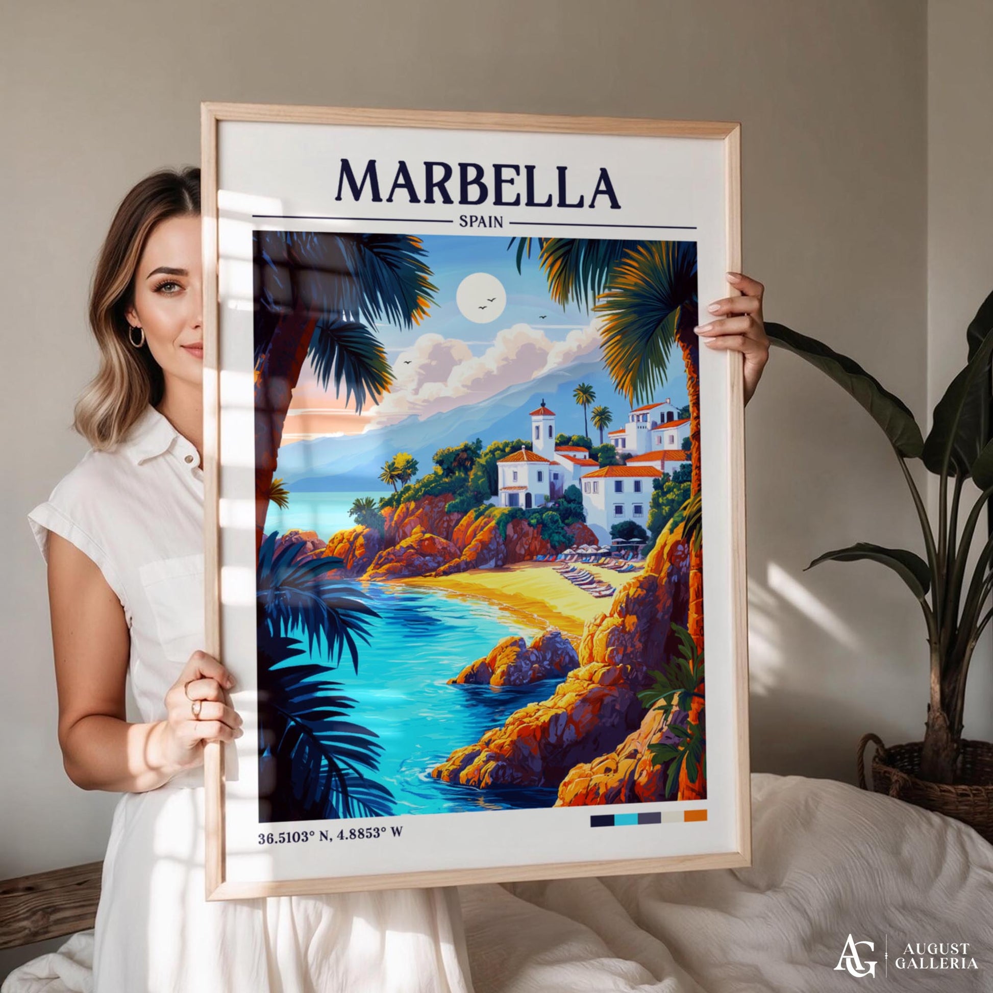 Bring the relaxed coastal charm of Marbella into your space with this gorgeous travel print that adds effortless Mediterranean elegance to any room. Its calm beachside atmosphere and refined architectural touches make it a perfect fit for modern, minimalist, or coastal décor. Ideal for anyone who loves stylish European destinations or wants a reminder of serene getaways.