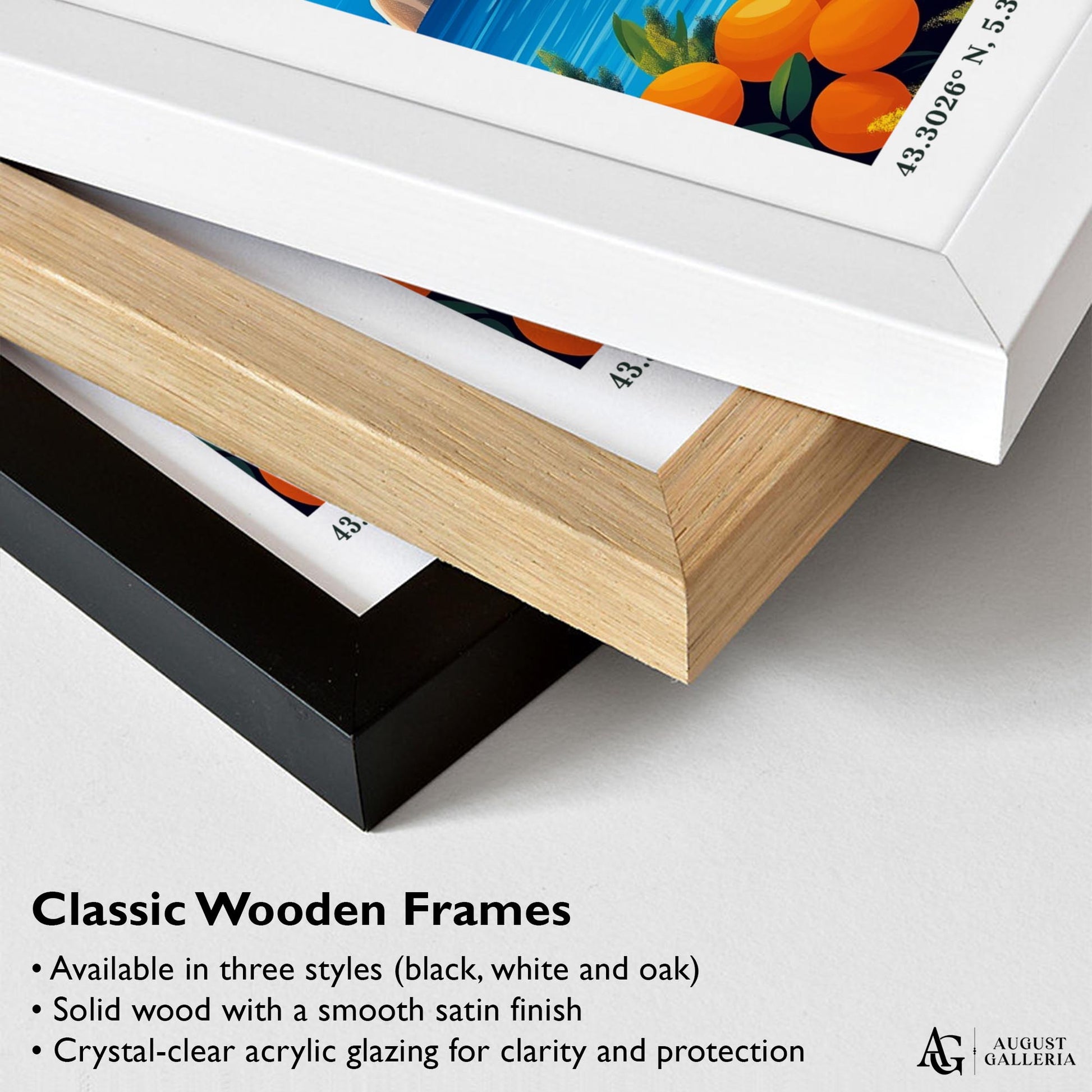 Made from sustainably sourced European wood and delivered ready to hang, available in black, white, or natural oak finishes. Includes a durable crystal-clear, shatter-resistant Perspex glaze for lasting protection and a sleek, modern look.