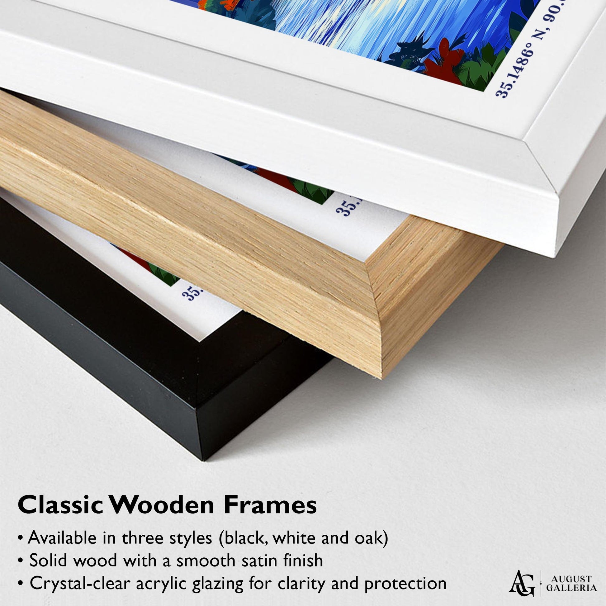 Made from sustainably sourced European wood and delivered ready to hang, available in black, white, or natural oak finishes. Includes a durable crystal-clear, shatter-resistant Perspex glaze for lasting protection and a sleek, modern look.