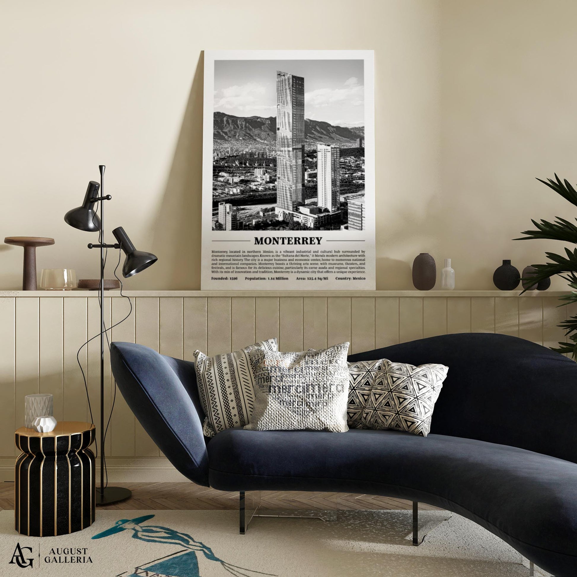 A black and white print of Monterrey providing a glimpse into the city's history and significance. Perfect for modern interiors, this piece exudes sophistication and offers a window into the city's soul.