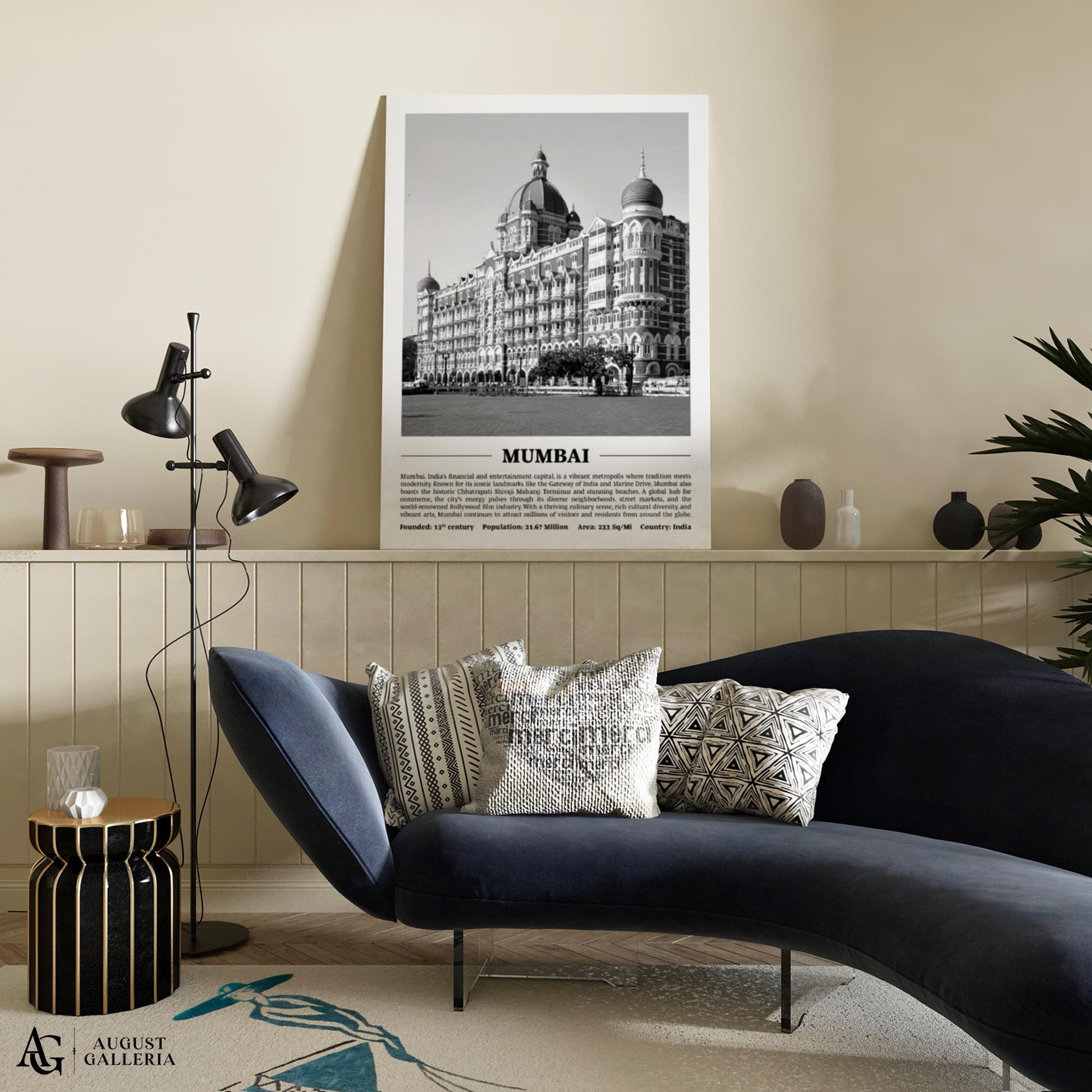 A black and white print of Mumbai providing a glimpse into the city's history and significance. Perfect for modern interiors, this piece exudes sophistication and offers a window into the city's soul.