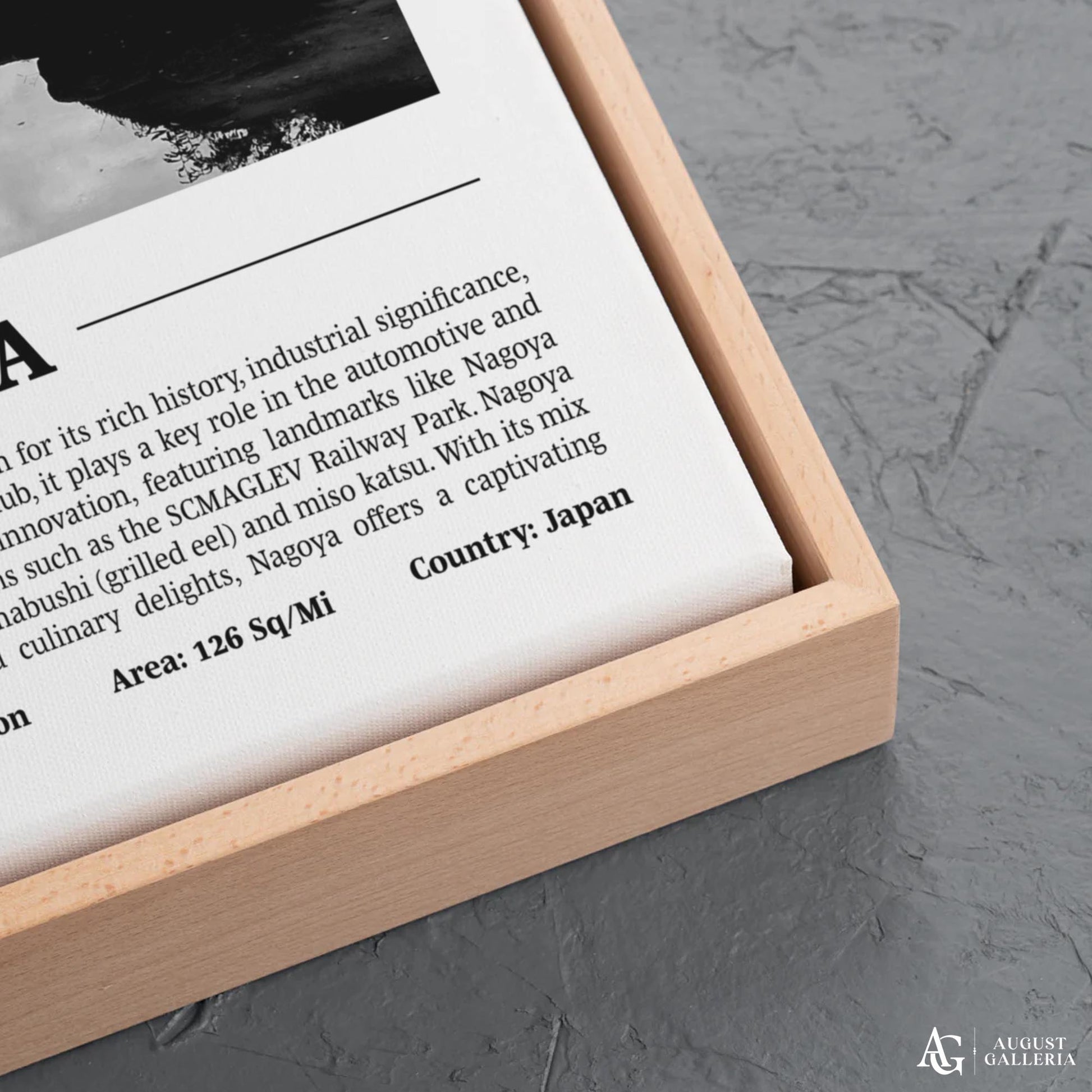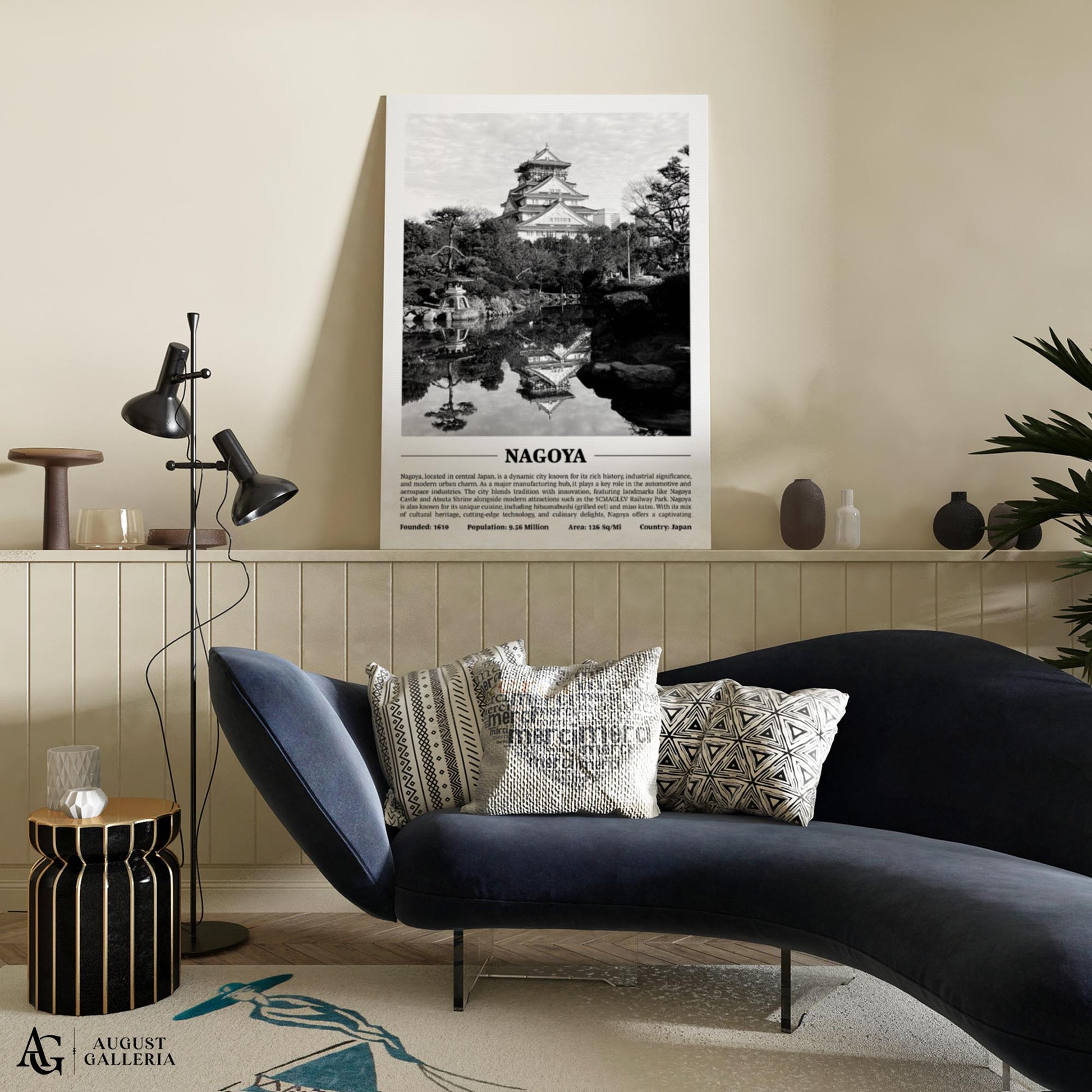 A black and white print of Nagoya providing a glimpse into the city's history and significance. Perfect for modern interiors, this piece exudes sophistication and offers a window into the city's soul.