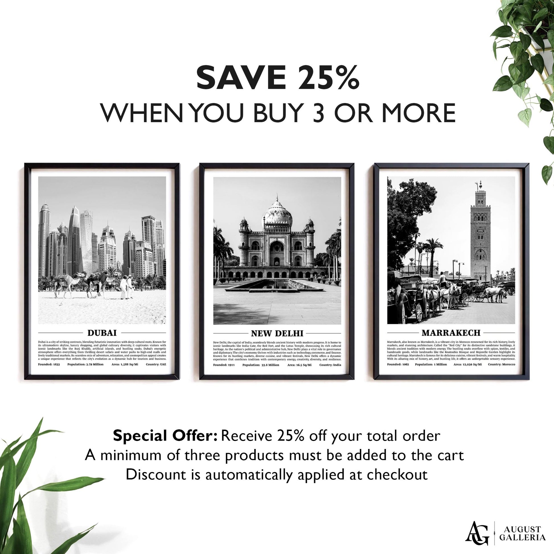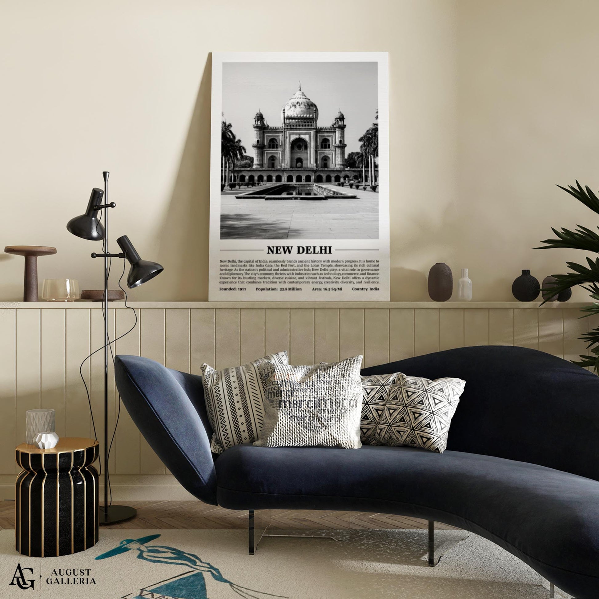 A black and white print of New Delhi providing a glimpse into the city's history and significance. Perfect for modern interiors, this piece exudes sophistication and offers a window into the city's soul.