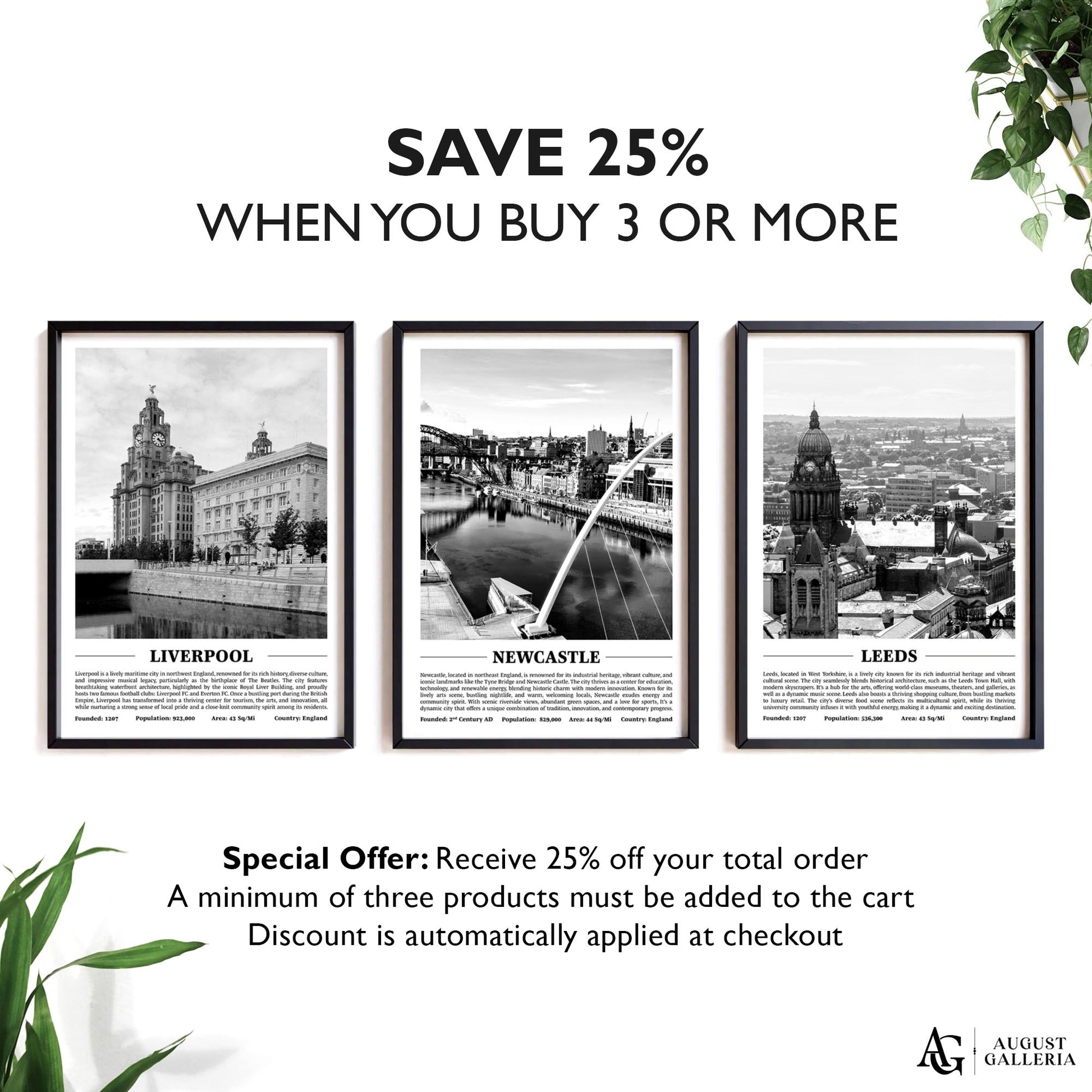 A black and white print of Newcastle providing a glimpse into the city's history and significance. Perfect for modern interiors, this piece exudes sophistication and offers a window into the city's soul.