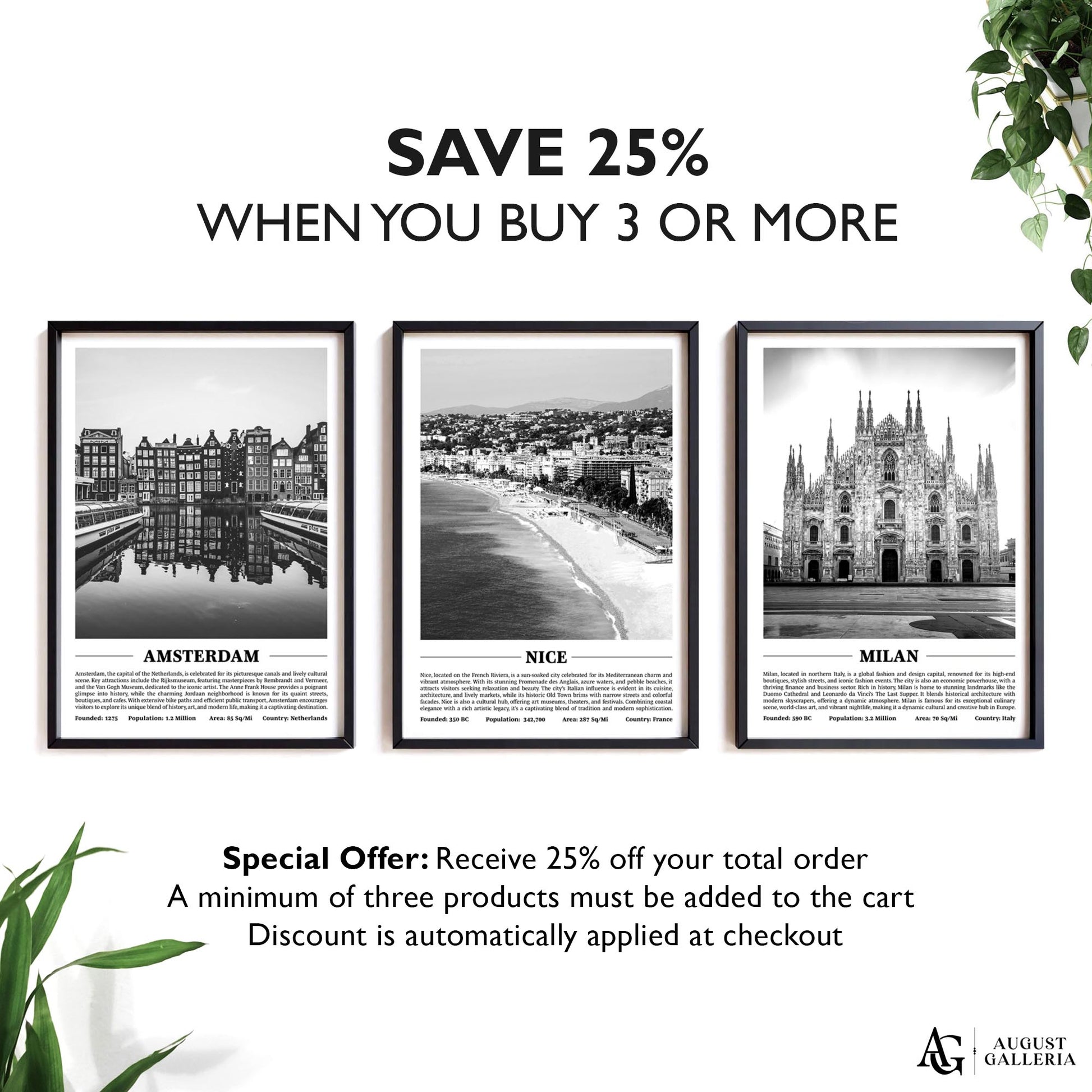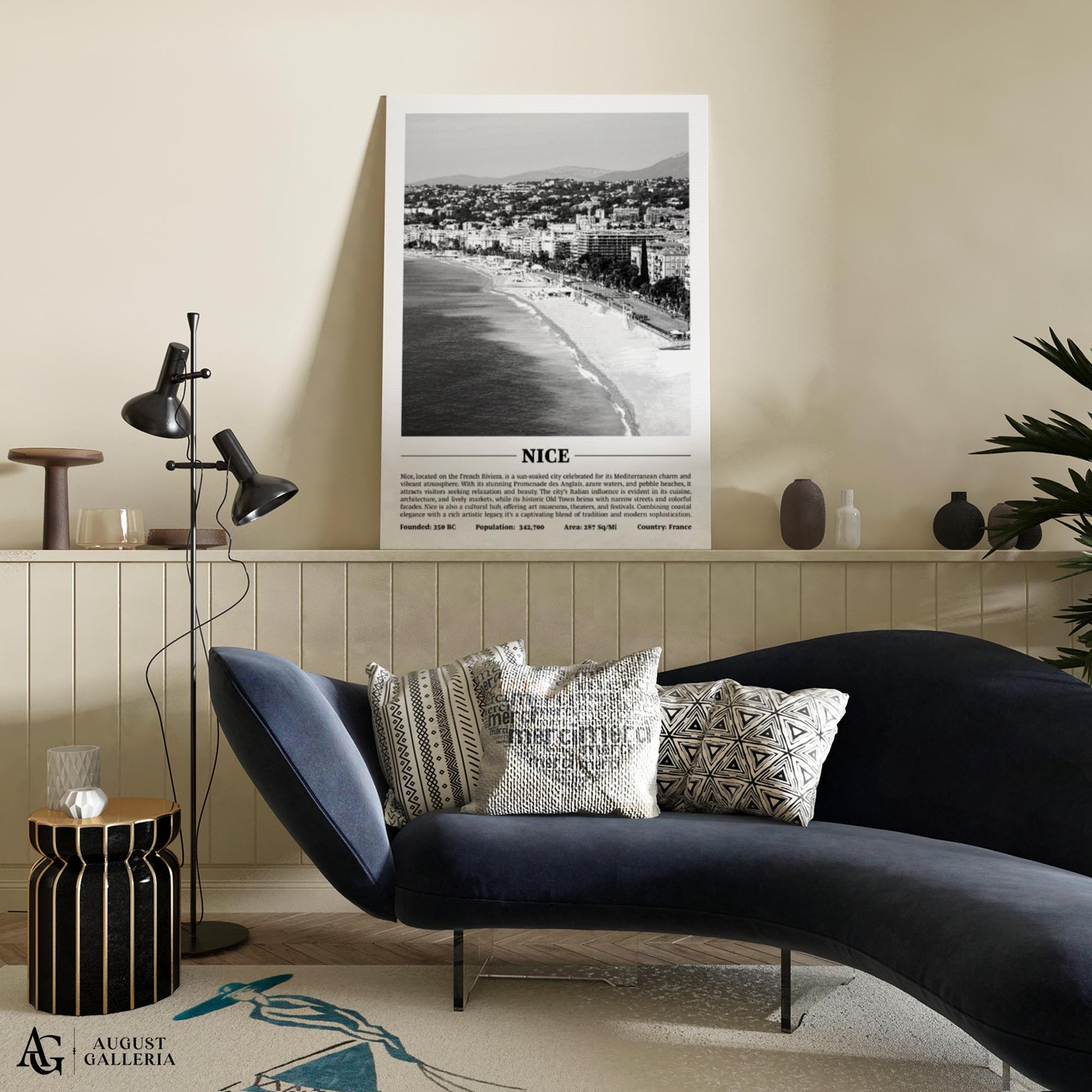 A black and white print of Nice providing a glimpse into the city's history and significance. Perfect for modern interiors, this piece exudes sophistication and offers a window into the city's soul.