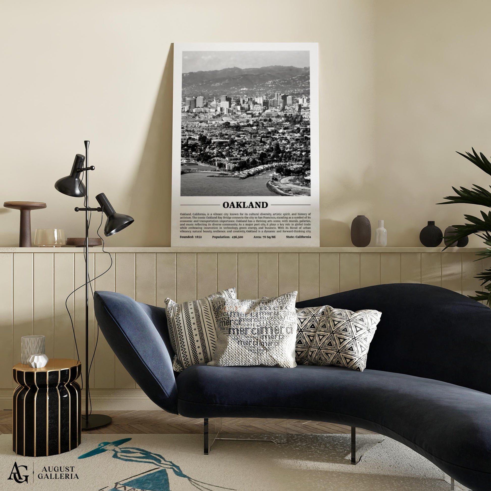 A black and white print of Oakland providing a glimpse into the city's history and significance. Perfect for modern interiors, this piece exudes sophistication and offers a window into the city's soul.