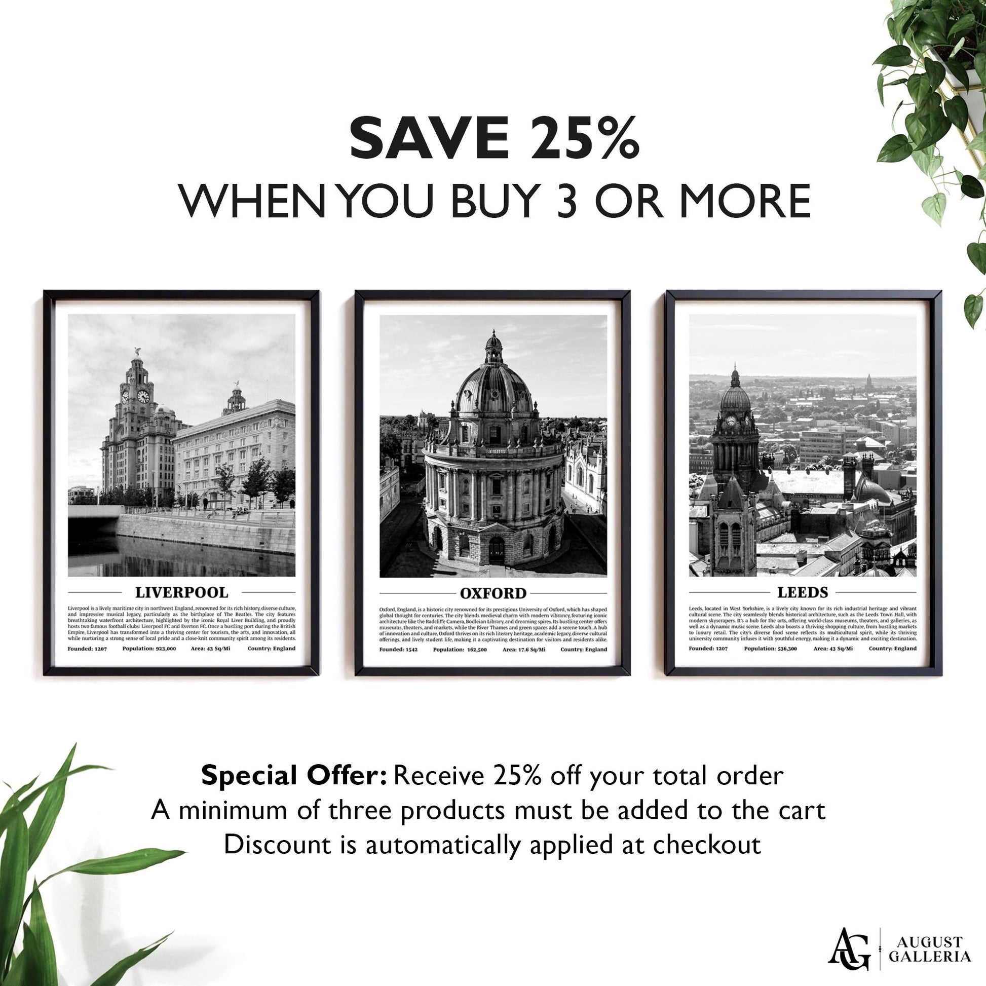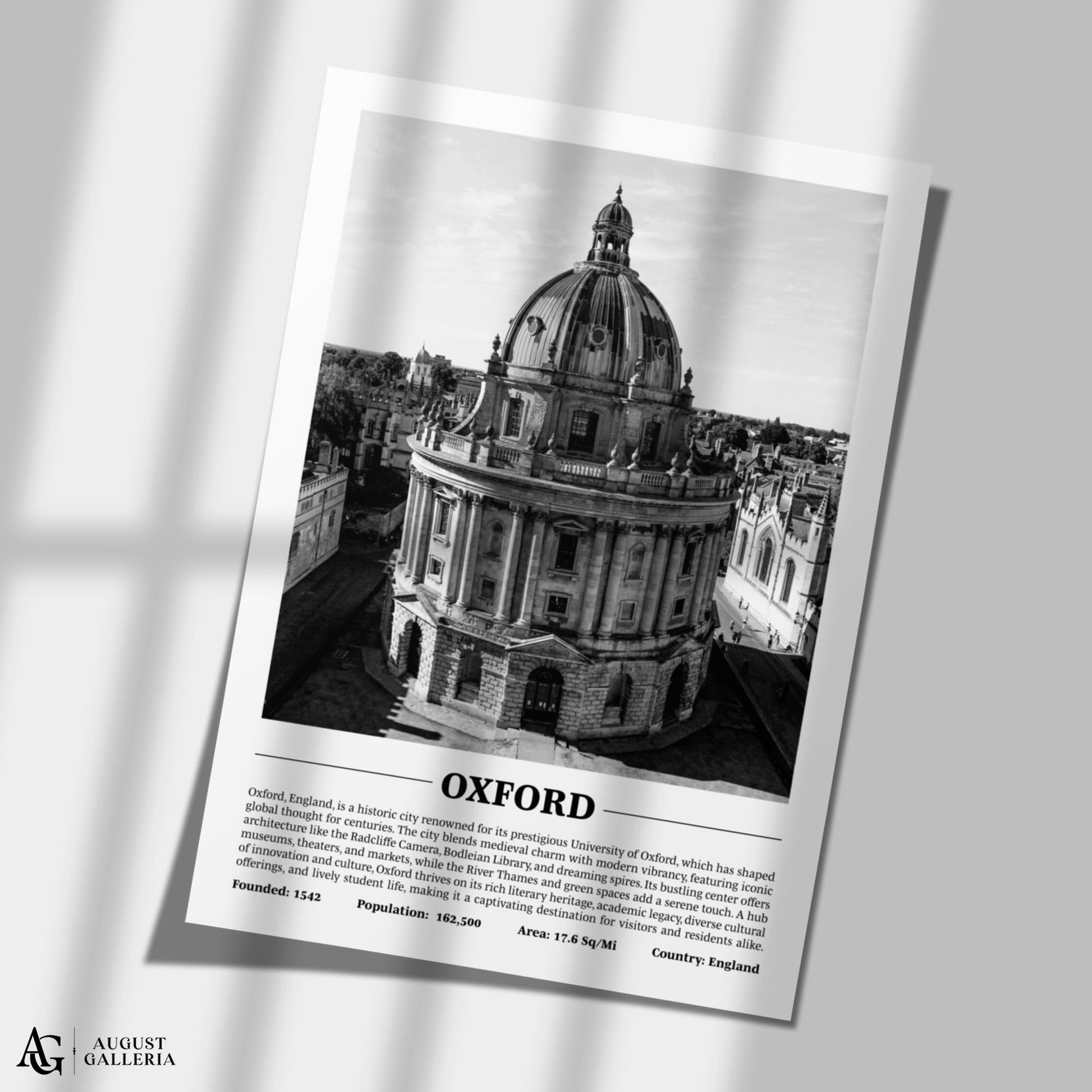 A black and white print of Oxford providing a glimpse into the city's history and significance. Perfect for modern interiors, this piece exudes sophistication and offers a window into the city's soul.