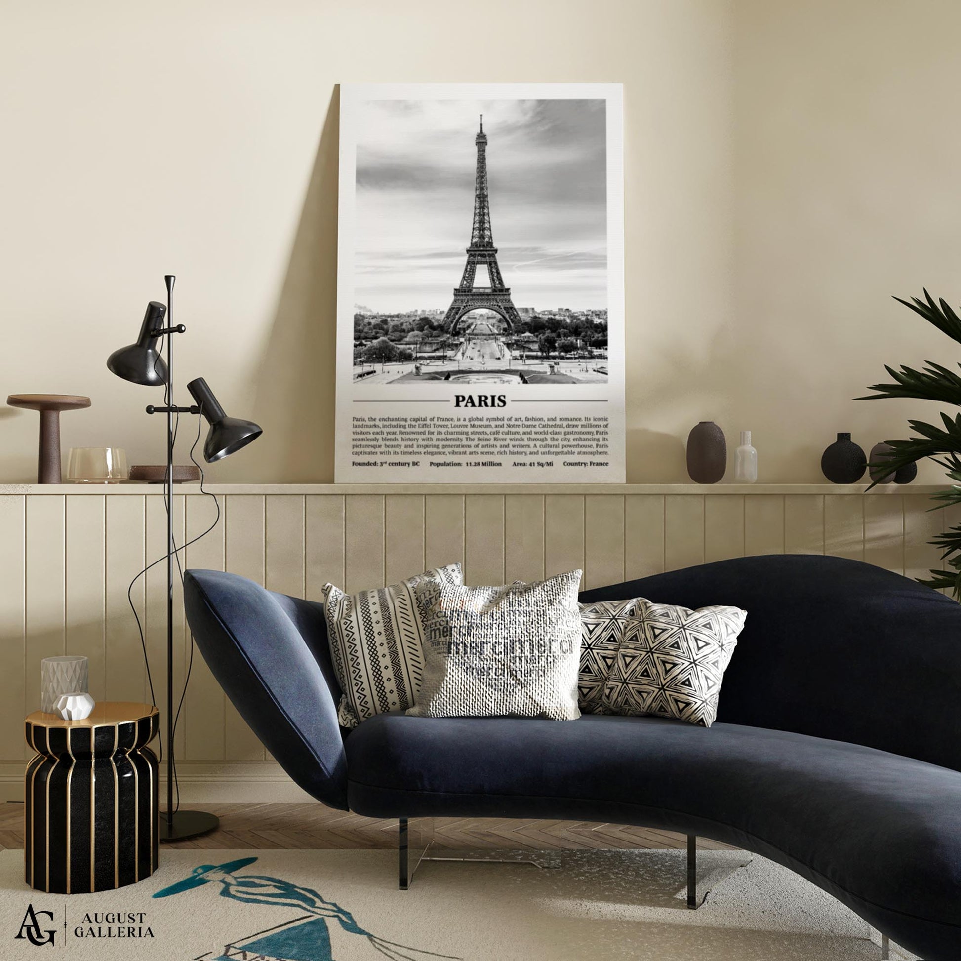A black and white print of Paris providing a glimpse into the city's history and significance. Perfect for modern interiors, this piece exudes sophistication and offers a window into the city's soul.