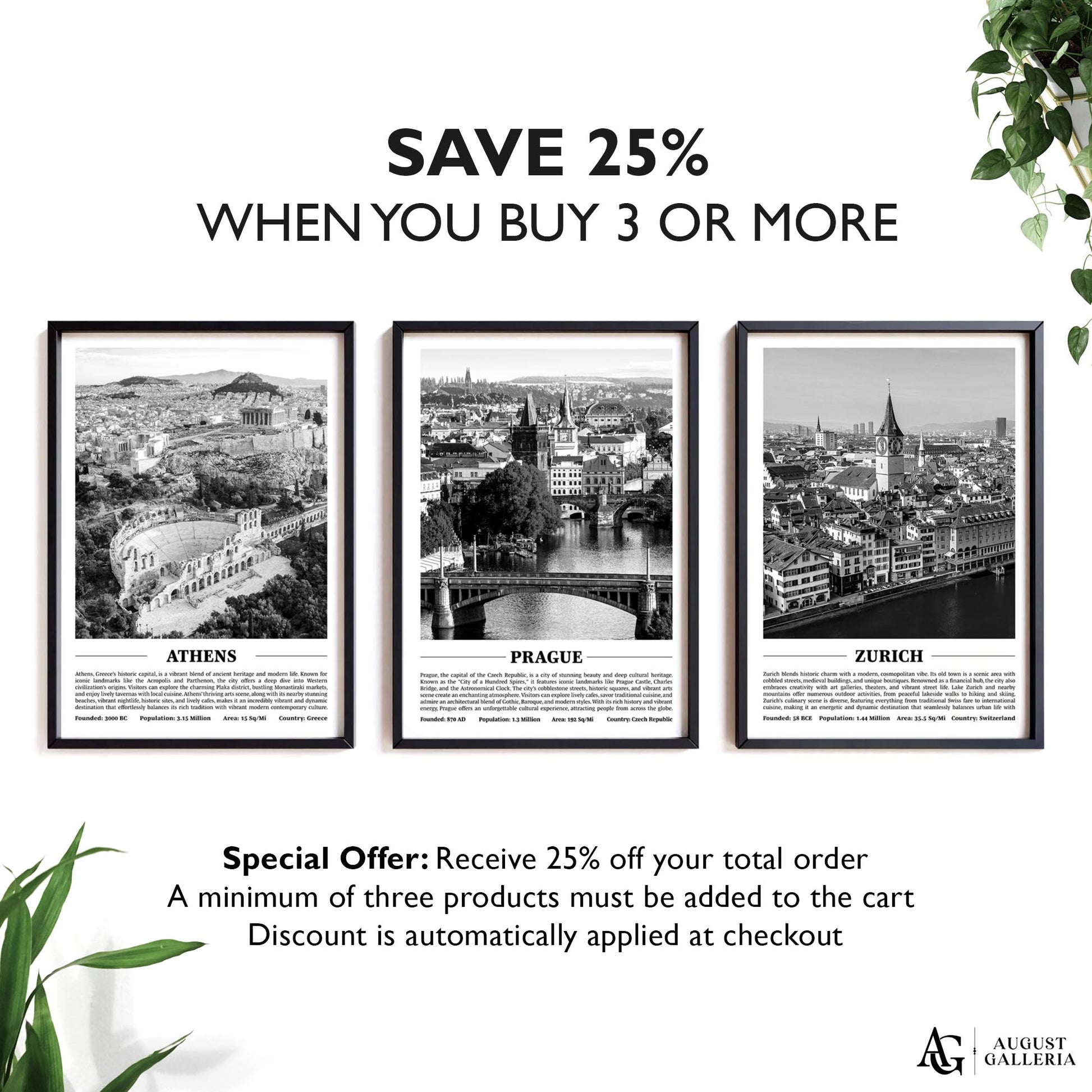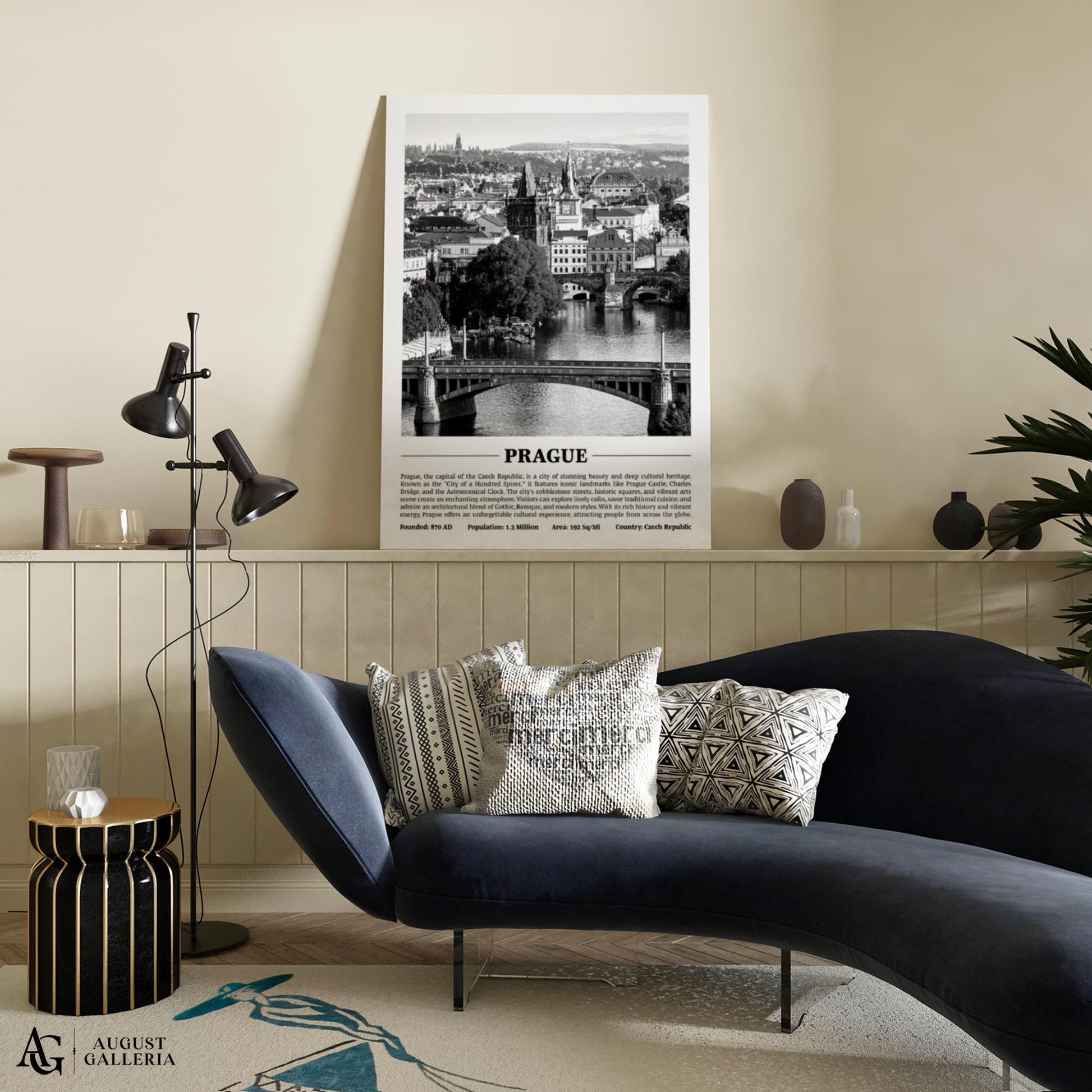 A black and white print of Prague providing a glimpse into the city's history and significance. Perfect for modern interiors, this piece exudes sophistication and offers a window into the city's soul.