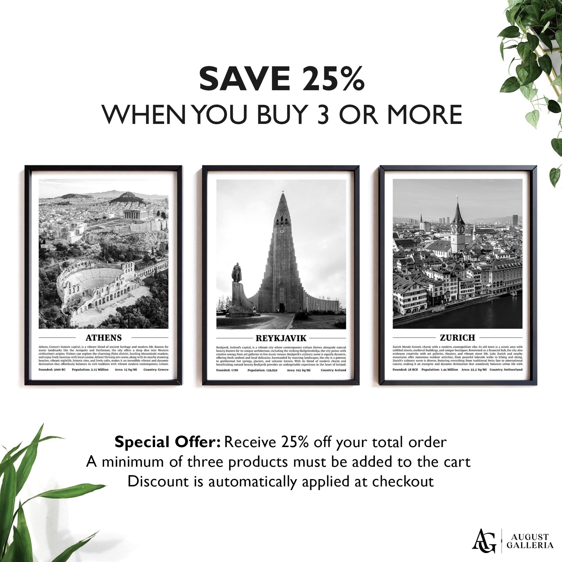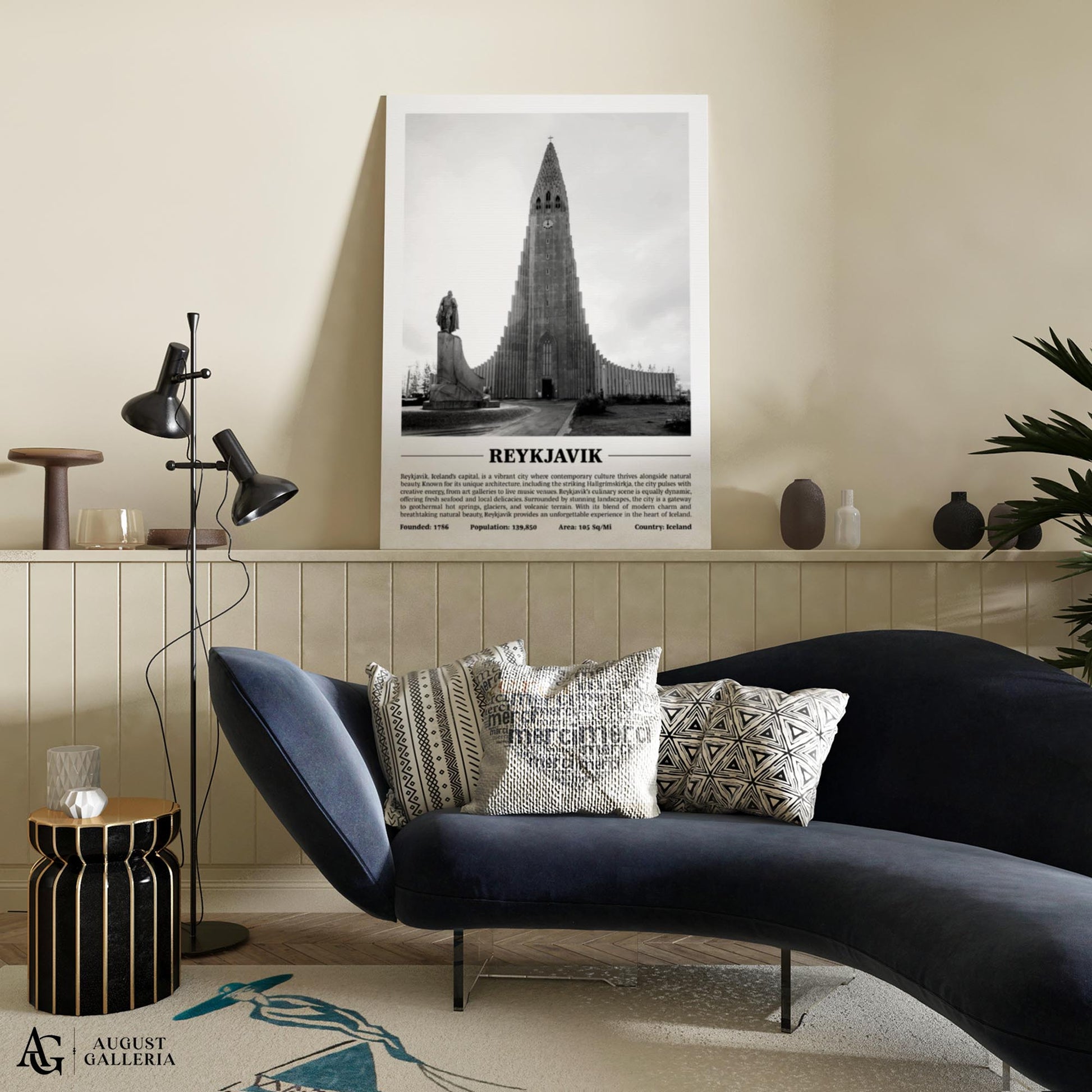 A black and white print of Reykjavik providing a glimpse into the city's history and significance. Perfect for modern interiors, this piece exudes sophistication and offers a window into the city's soul.