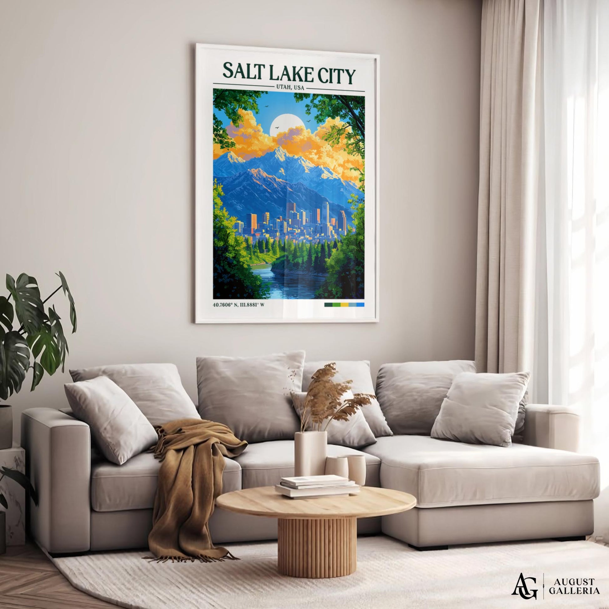 Celebrate the striking beauty of Salt Lake City with this retro-inspired travel artwork, featuring its impressive mountain backdrop and the elegant Salt Lake Temple at the city’s heart. Surrounded by the dramatic peaks of the Wasatch Range, the city is known for its stunning scenery, rich history, and welcoming atmosphere. Whether it’s a reminder of your travels, a connection to home, or simply an appreciation for breathtaking landscapes, this print captures the unique spirit and charm of Salt Lake City.
