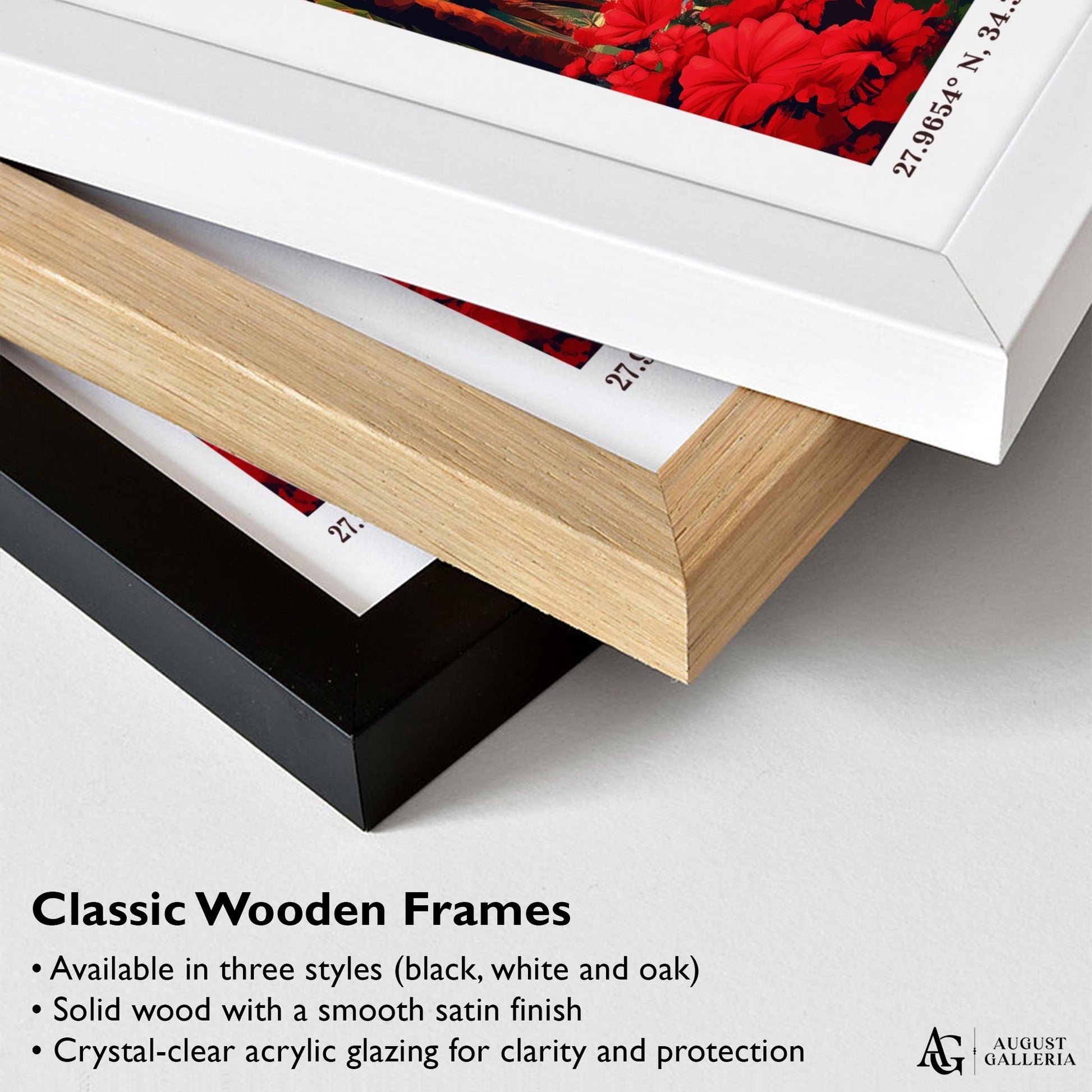 Made from sustainably sourced European wood and delivered ready to hang, available in black, white, or natural oak finishes. Includes a durable crystal-clear, shatter-resistant Perspex glaze for lasting protection and a sleek, modern look.