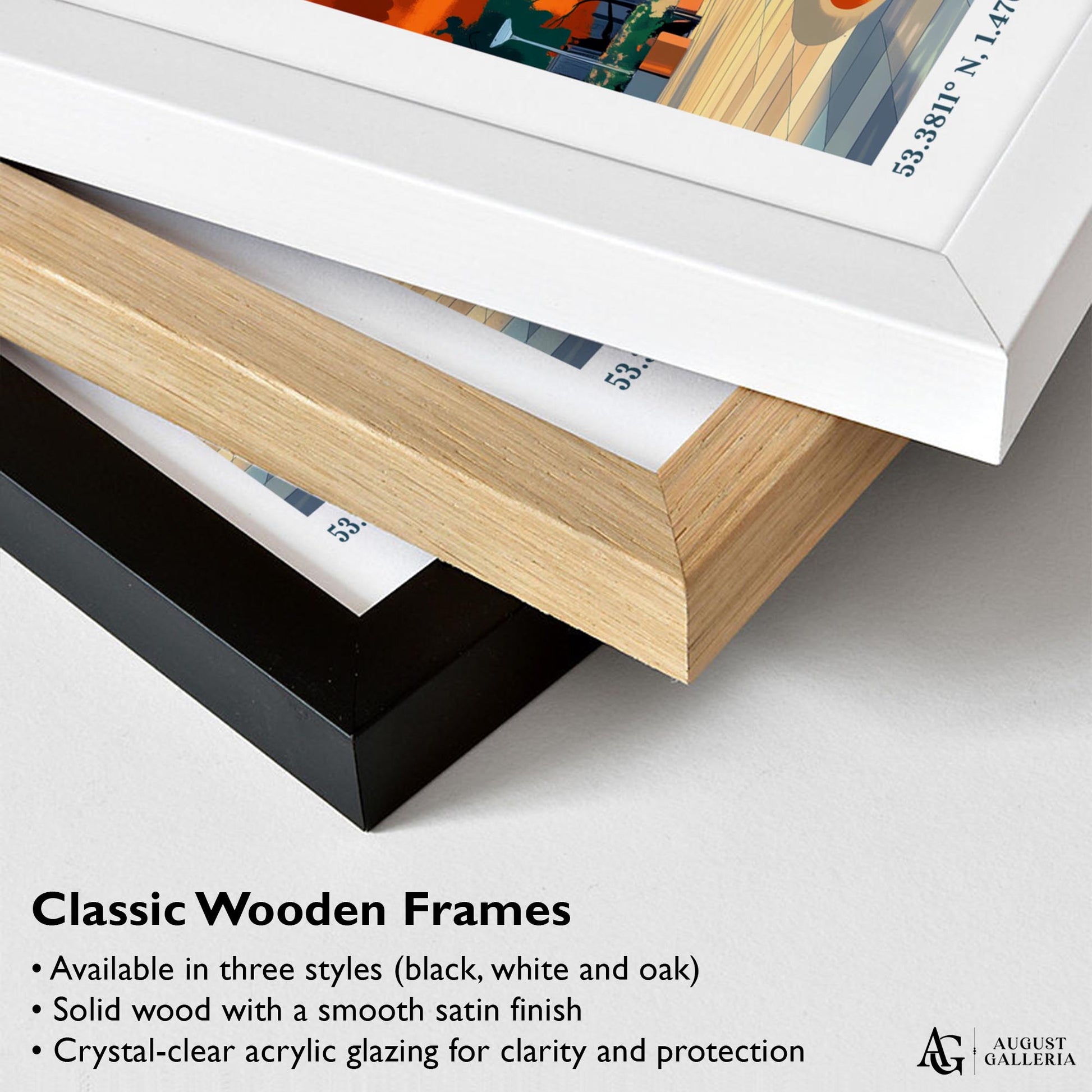 Made from sustainably sourced European wood and delivered ready to hang, available in black, white, or natural oak finishes. Includes a durable crystal-clear, shatter-resistant Perspex glaze for lasting protection and a sleek, modern look.