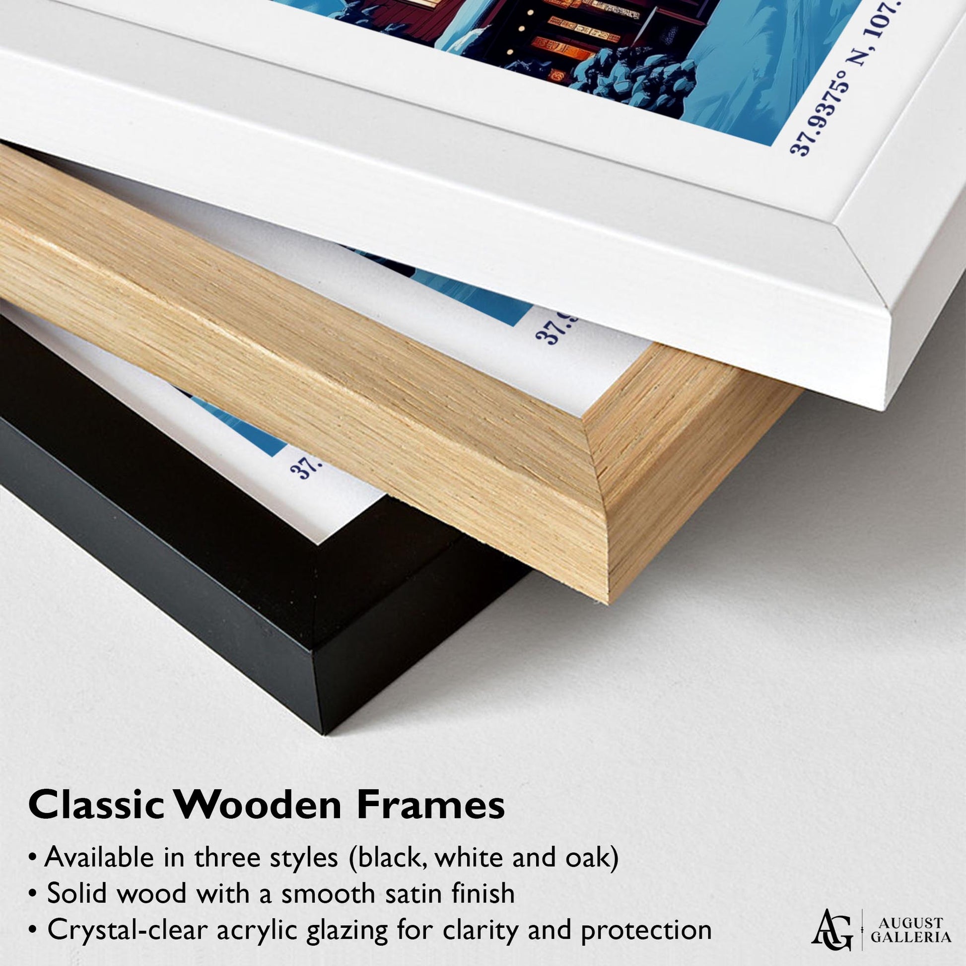 Made from sustainably sourced European wood and delivered ready to hang, available in black, white, or natural oak finishes. Includes a durable crystal-clear, shatter-resistant Perspex glaze for lasting protection and a sleek, modern look.