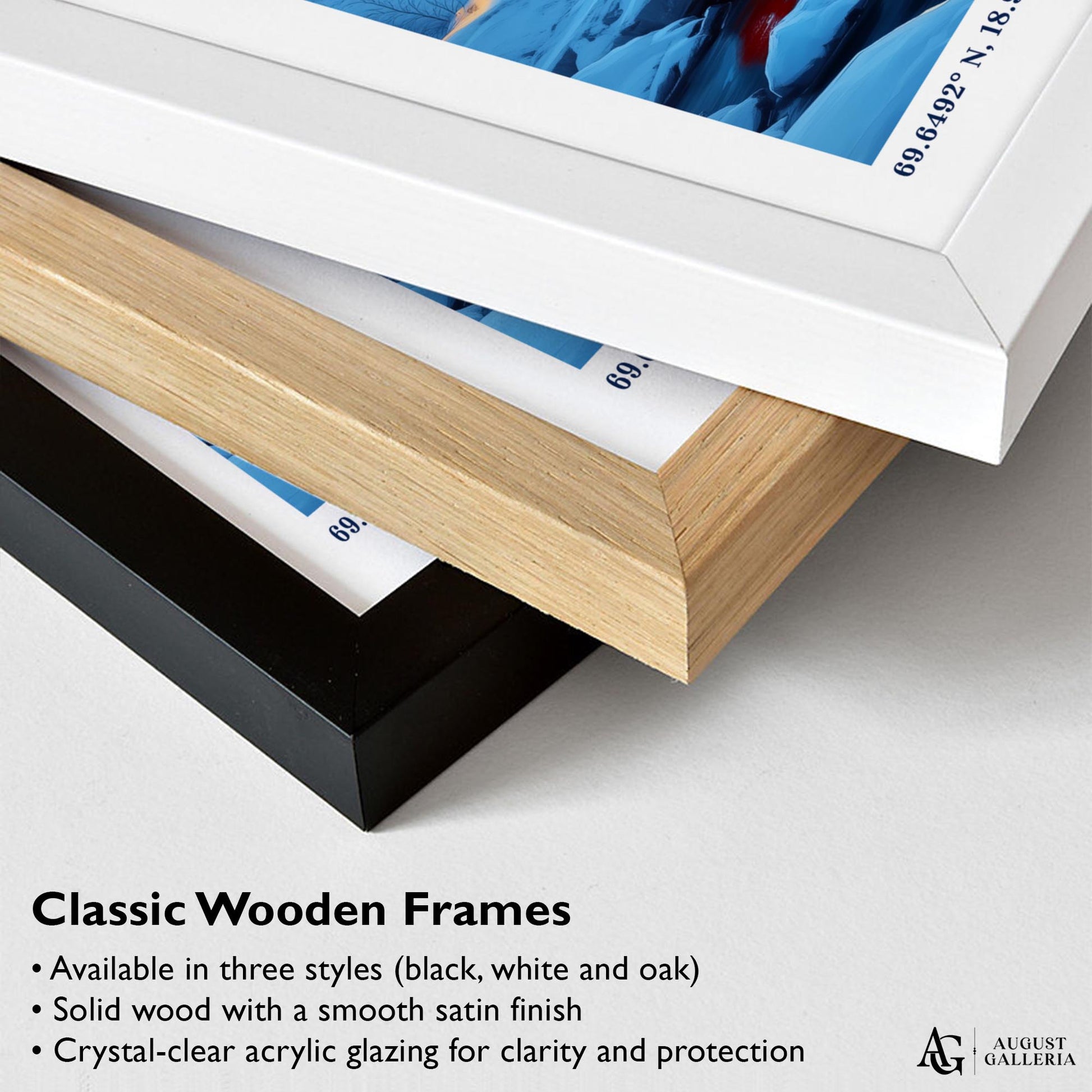 Made from sustainably sourced European wood and delivered ready to hang, available in black, white, or natural oak finishes. Includes a durable crystal-clear, shatter-resistant Perspex glaze for lasting protection and a sleek, modern look.