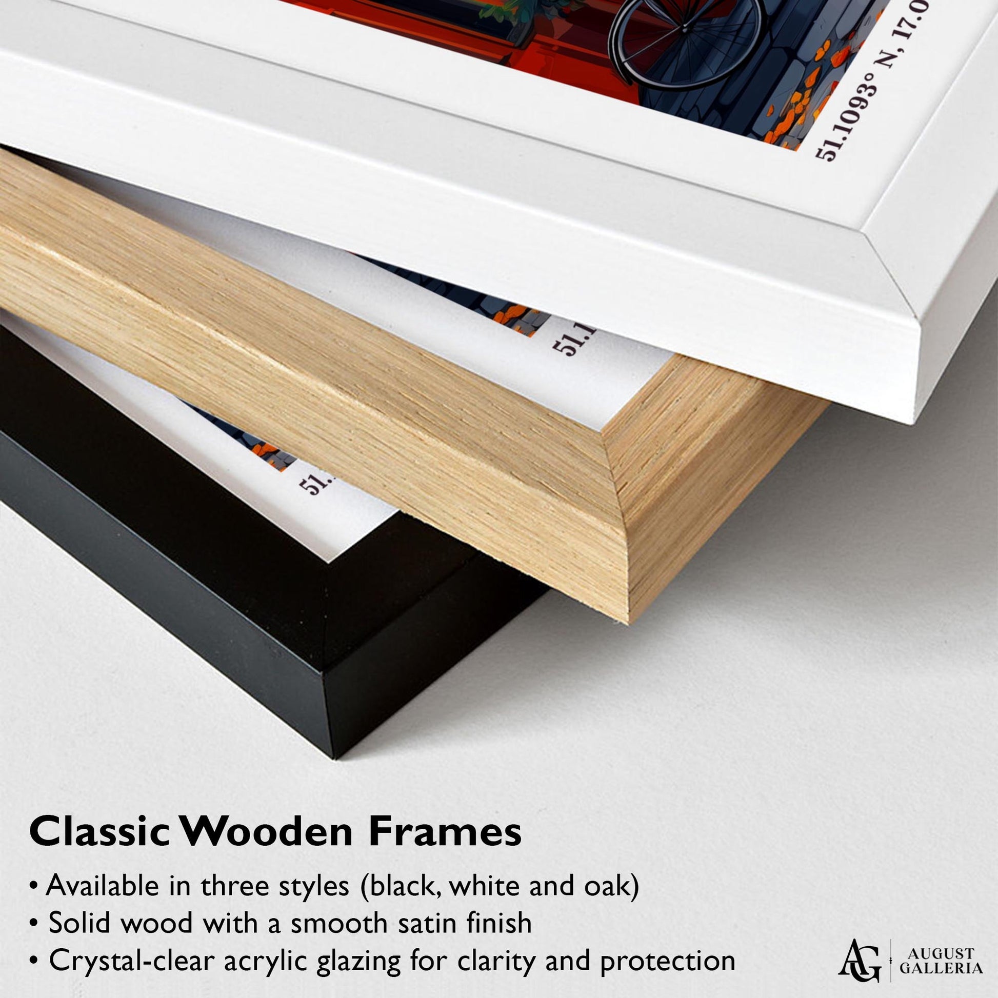 Made from sustainably sourced European wood and delivered ready to hang, available in black, white, or natural oak finishes. Includes a durable crystal-clear, shatter-resistant Perspex glaze for lasting protection and a sleek, modern look.