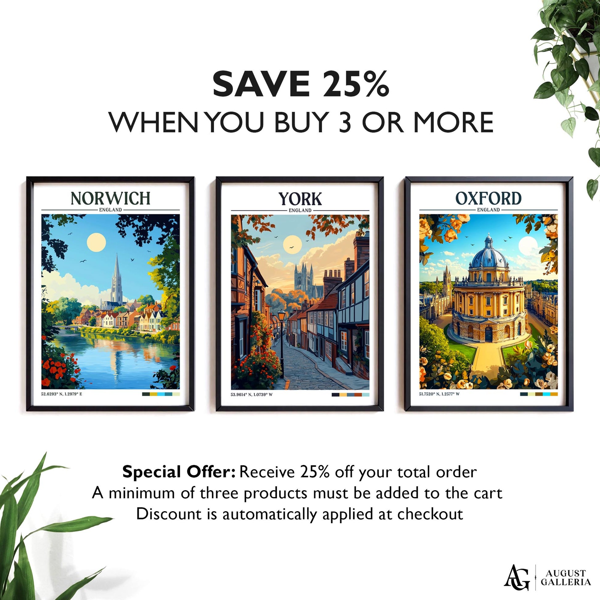 This retro travel print of York celebrates the city’s rich history and timeless charm. Perfect for lovers of travel and heritage, it brings character and warmth to any space. Ideal for display in homes or offices, it sparks conversation and admiration for one of England’s most iconic cities. The print makes a thoughtful gift or a standout addition to any collection. A beautiful way to capture the spirit of York and its enduring appeal.