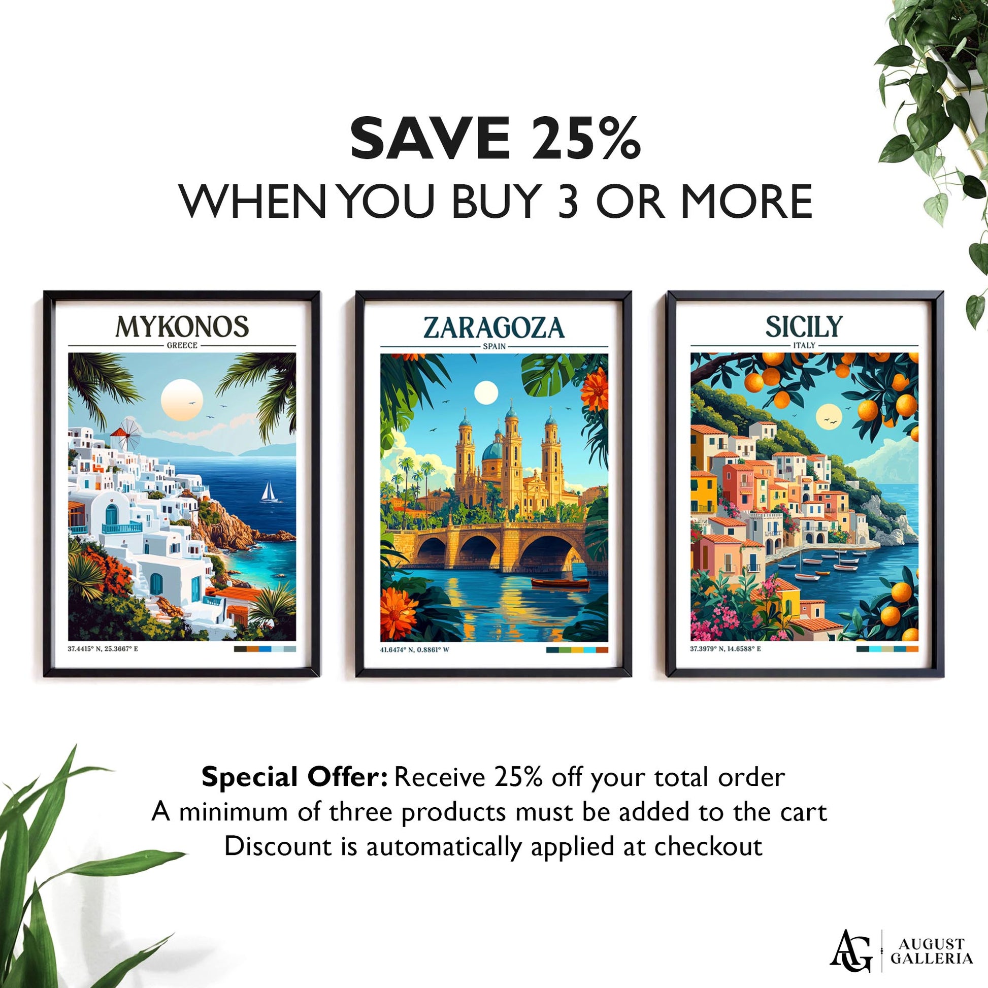 This retro travel print of Zaragoza celebrates the vibrant character and charm of the Spanish city. Perfect for travel enthusiasts and collectors, it brings a sense of adventure and cultural richness to any space. Ideal for display in homes or offices, it sparks conversation and admiration for Zaragoza’s unique atmosphere. The print makes a thoughtful gift or a striking addition to any wall. A stylish way to capture the spirit of this historic city.